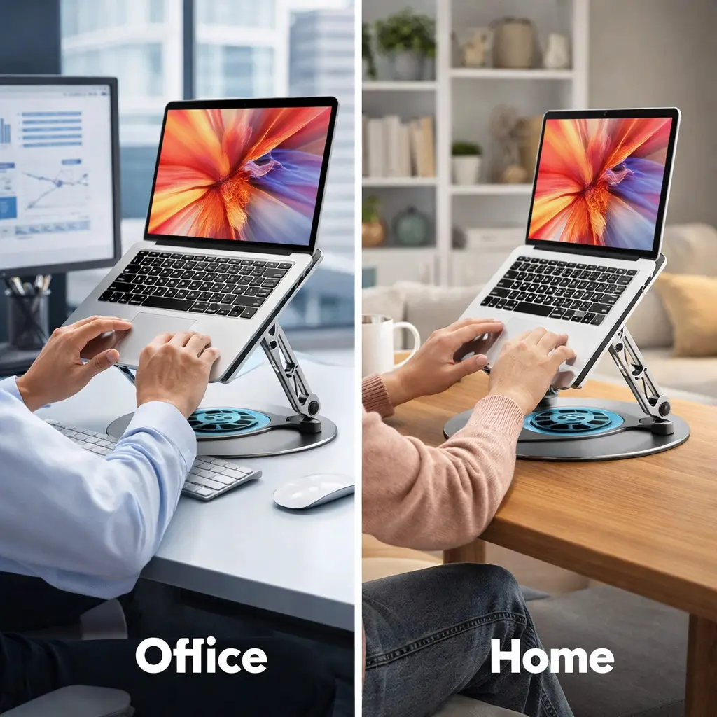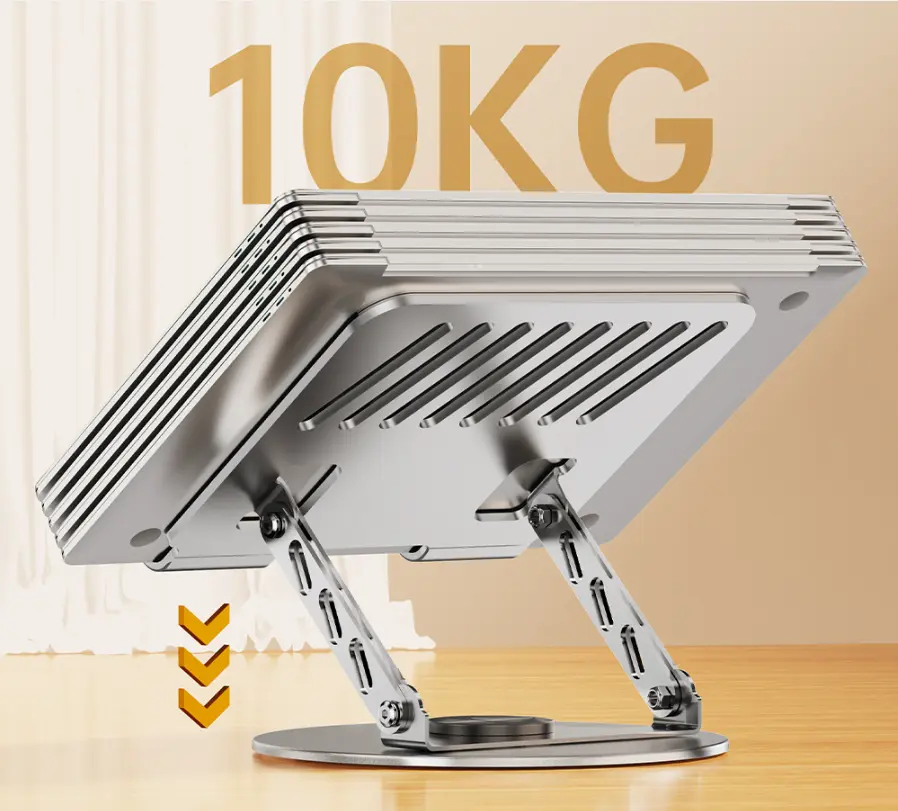 【360° Full Rotation & Foldable Design】 This all-metal laptop stand supports full 360° horizontal rotation and multiple-angle folding, allowing you to effortlessly adjust your screen to the perfect viewing position—ideal for presentations, shared viewing, or ergonomic typing.