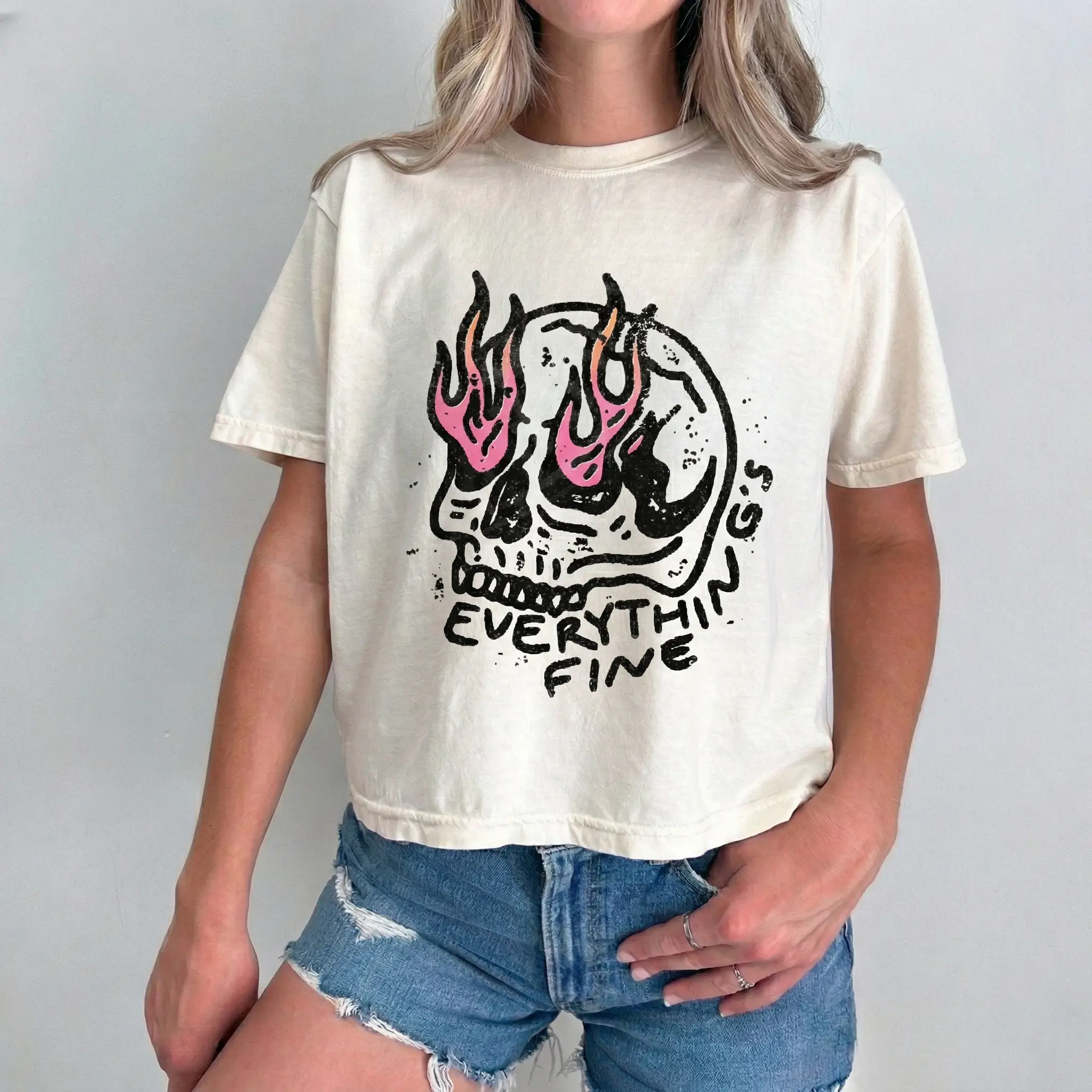 Everything is Fine Shirt, Retro Grunge Shirt, Sarcastic Shirt, Funny Skeleton Shirt, Festival Shirt, Comfort Colors®, Rebel Tee, Pink Flames