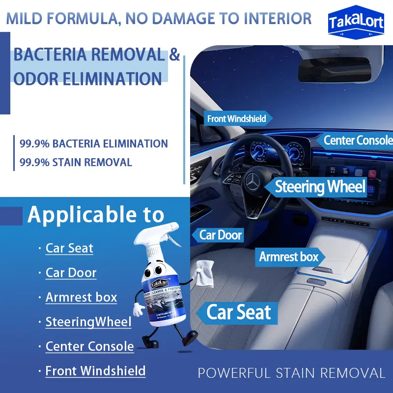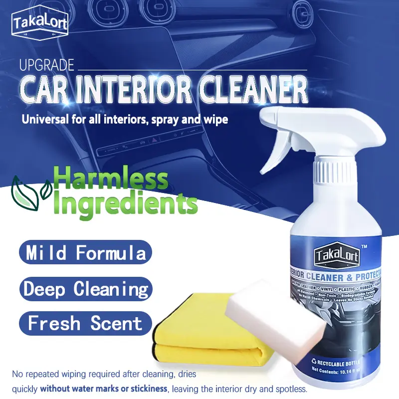 ·Keep your car interior clean, fresh, and well-maintained with this all-in-one interior cleaner spray—now including a microfiber towel and cleaning sponge for a complete detailing kit. This multi-surface interior detailer is designed to remove everyday dirt, dust, fingerprints, and stains from dashboards, leather seats, vinyl, plastic, and trim. Simply spray and wipe to restore a clean, natural look without leaving behind any sticky residue.