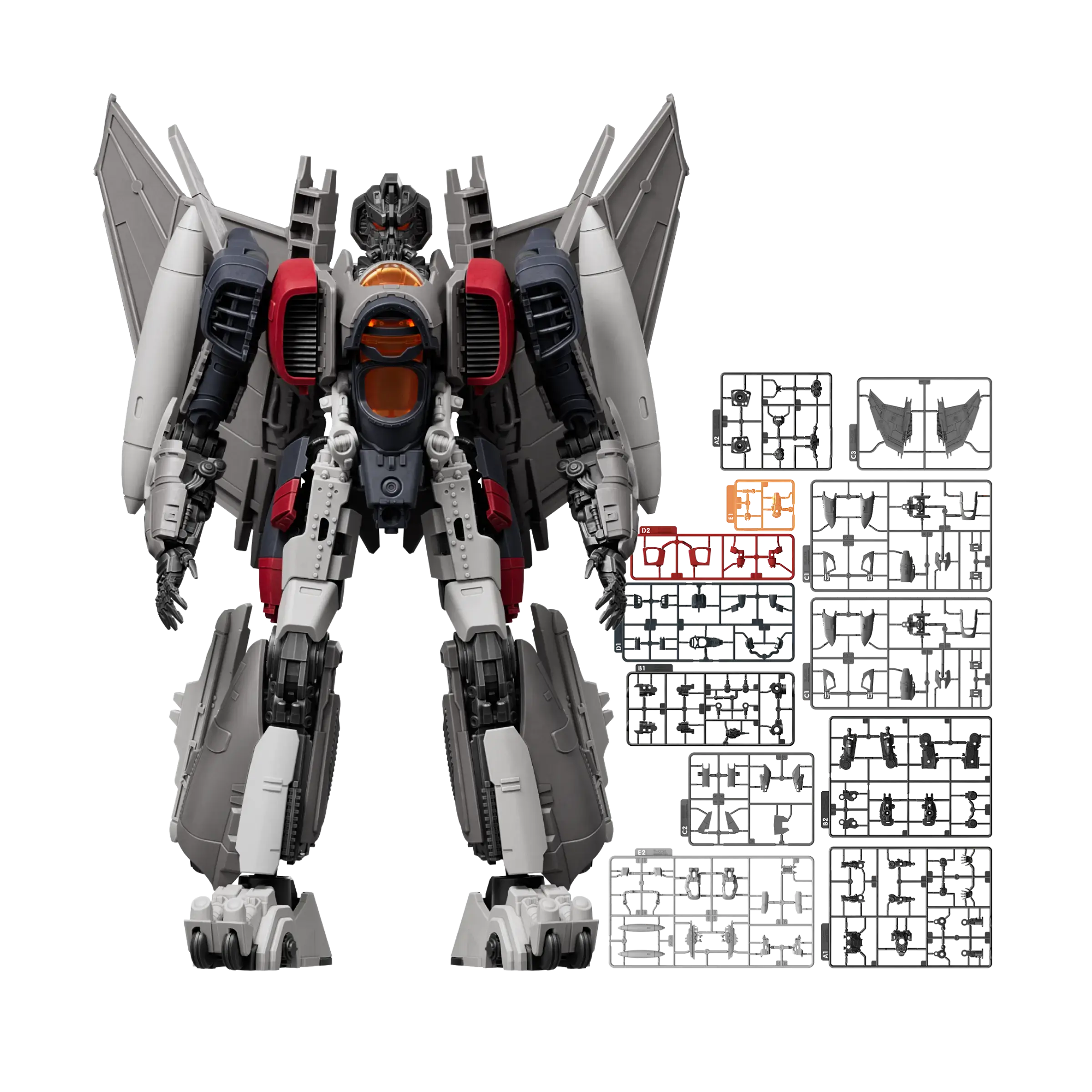 Gleaming steel cleaves the horizon as Blitzwing arrives in power! As an officially licensed model kit, it is composed of 95 pieces and faithfully recreates Blitzwing’s signature mechanical look with striking detail and character accuracy.