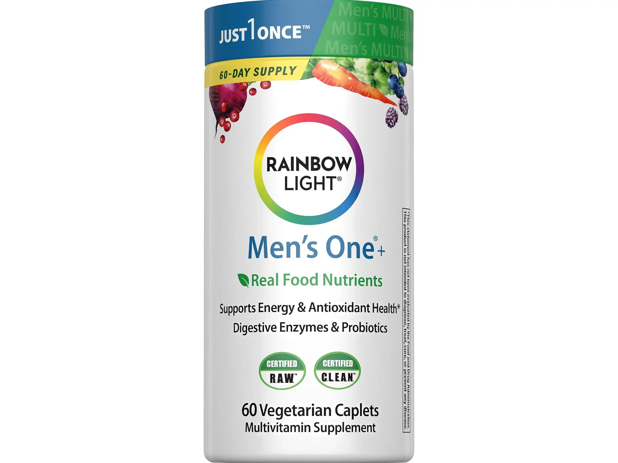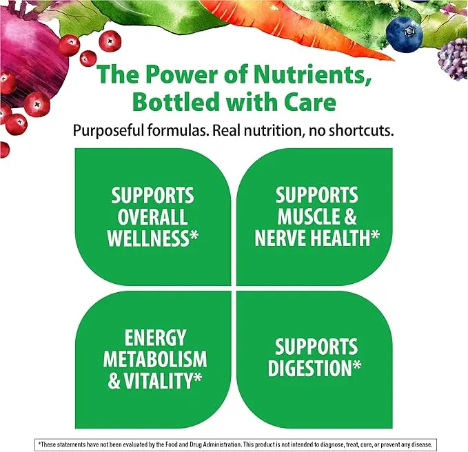 | Ingredients | Vitamin A (as beta-carotene,Vitamin C (ascorbic acid),Vitamin D (as cholecalciferol),Vitamin E (as d-alpha tocopheryl succinate),Vitamin K (as phytonadione),Thiamin (as thiamin mononitrate),Riboflavin (vitamin B2),Niacin (as niacinamide),Vitamin B6 (as pyridoxine hydrochloride),Folate (as folic acid) 400 mcg DFE (240 mcg folic acid),Vitamin B12 (as methylcobalamin),Biotin,Pantothenic Acid (as calcium pantothenate),Choline (as choline bitartrate),Calcium (from red algae (Lithothamnion sp.)),Iodine (from inactivated yeast (Saccharomyces cerevisiae)),Magnesium (as magnesium oxide from seawater),Zinc (as zinc citrate),Selenium (as selenium L-methionine complex),Copper (as copper chelate),Manganese (as manganese citrate),Chromium (as chromium picolinate),Molybdenum (as molybdenum glycinate chelate),Organic Spirulina,Organic Beet (root),Organic Broccoli (floret,stem),Organic Kale (leaf),Organic Spinach (leaf),Organic Blackberry (fruit),Organic Blueberry (fruit),Organic Carrot (root),Organic Cranberry (fruit),Ashwagandha (root) Extract,Organic Green Tea (leaf) Extract,Organic Chlorella,Lycopene (from tomato (fruit),Ginger (root) Juice Extract,Bromelain (from pineapple stem),Papain (from papaya fruit latex),Bacillus coagulans MTCC 5856. Other ingredients: Microcrystalline cellulose,maltodextrin,coating (hydroxypropyl cellulose,hypromellose),croscarmellose sodium. |