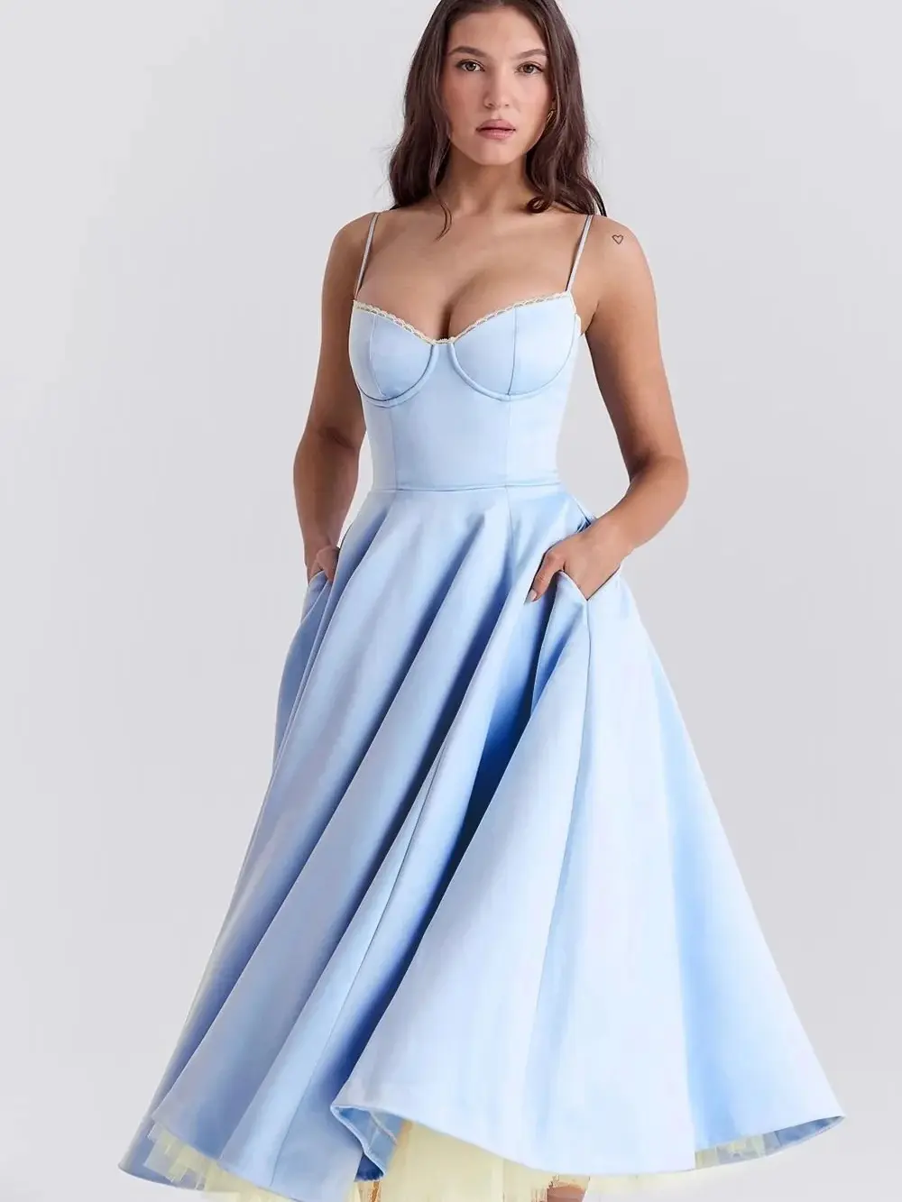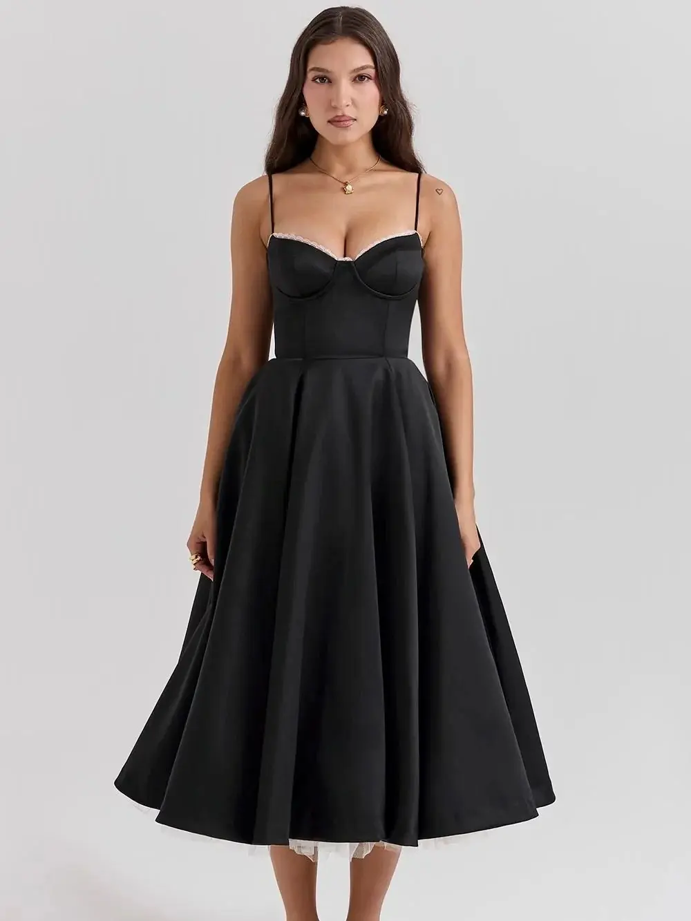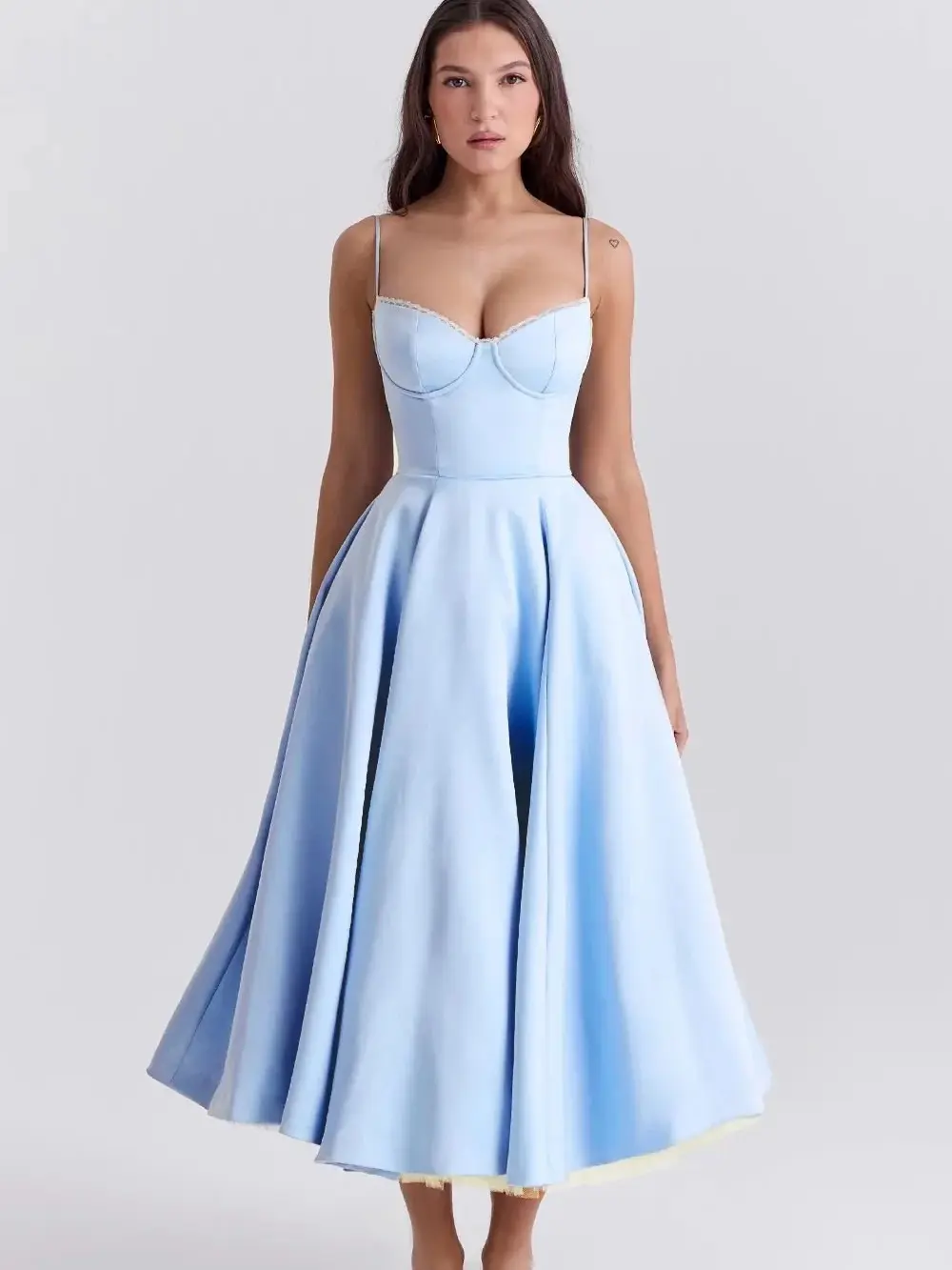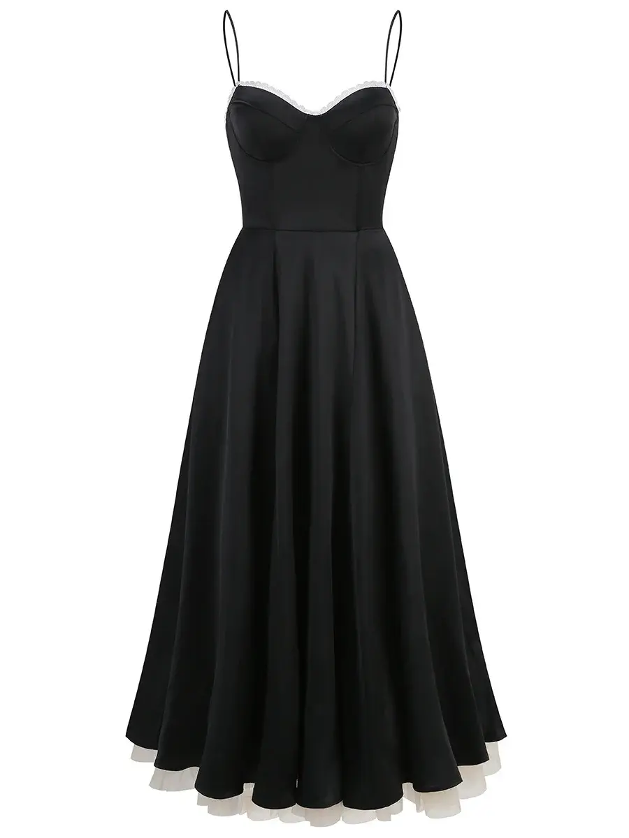 LYD Women's Corset Spaghetti Strap Bustier Midi Dress - Vintage Basic Elegant Satin Flowy Pleated H