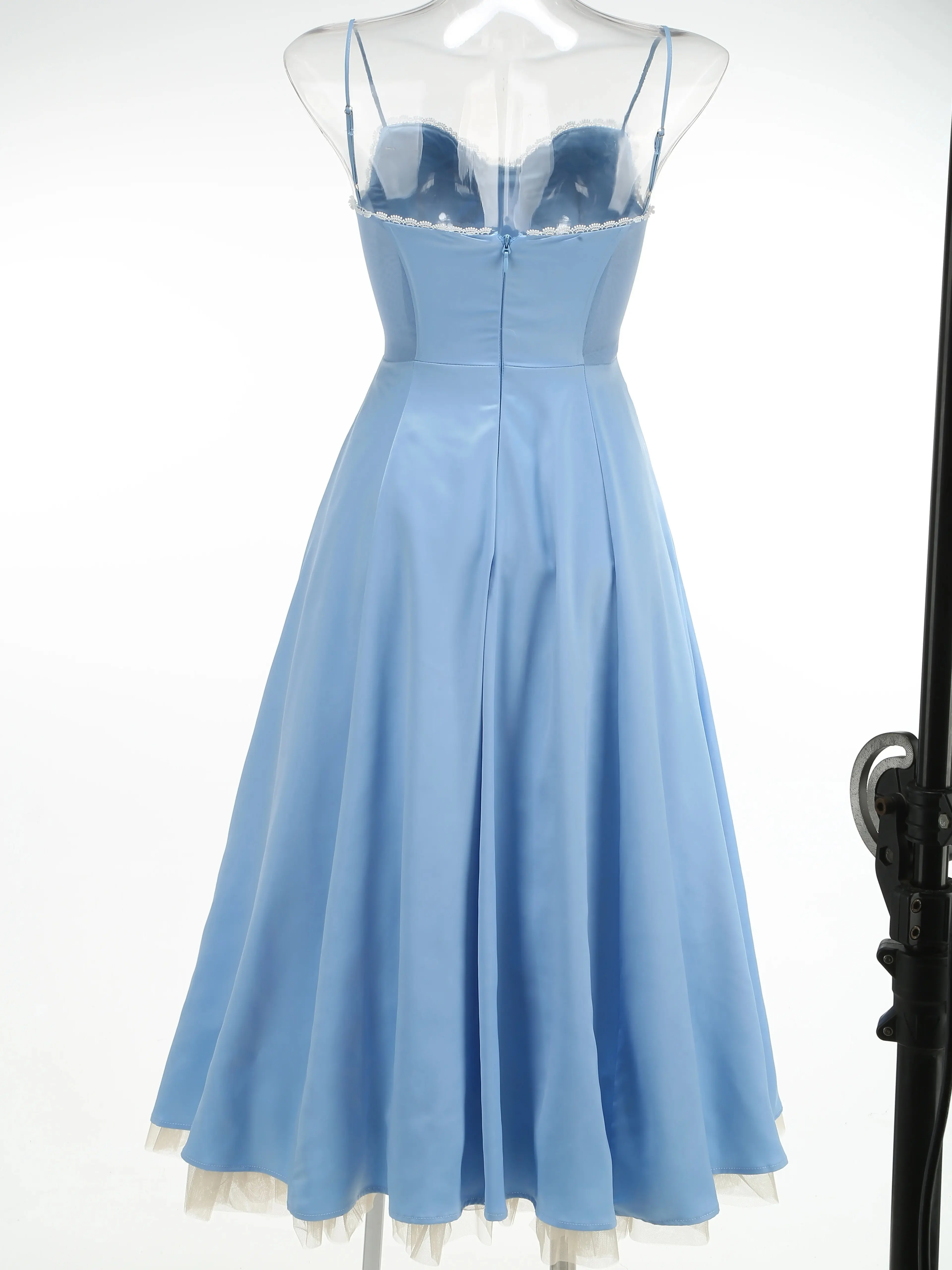 Popilush Satin Cowl Neck Spaghetti Strap Midi Swing Dress - Casual Breathable Elastic Fabric for Everyday Womenswear Feminine Adjustable Mesh