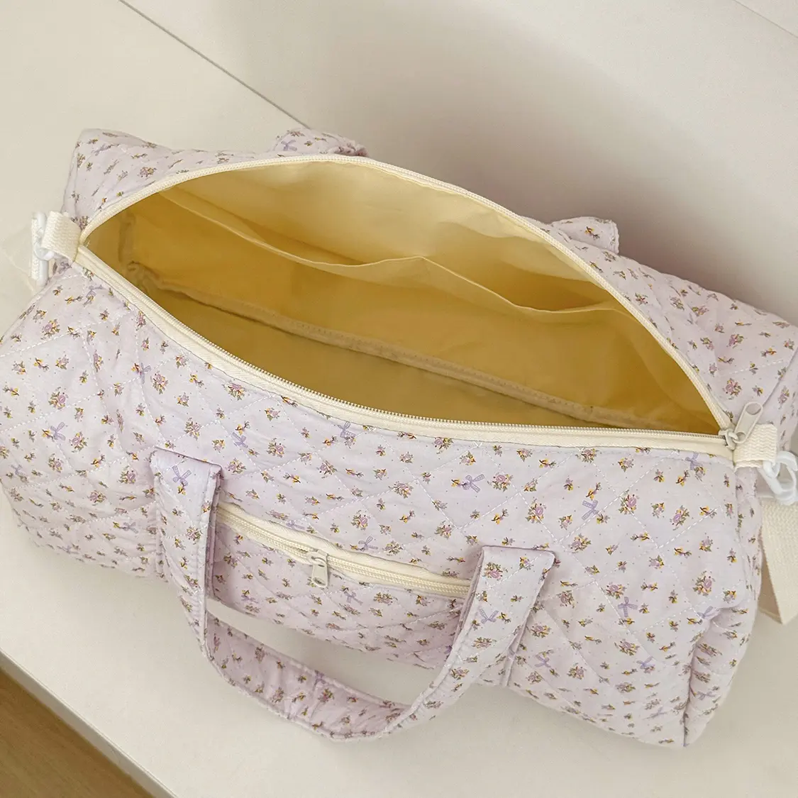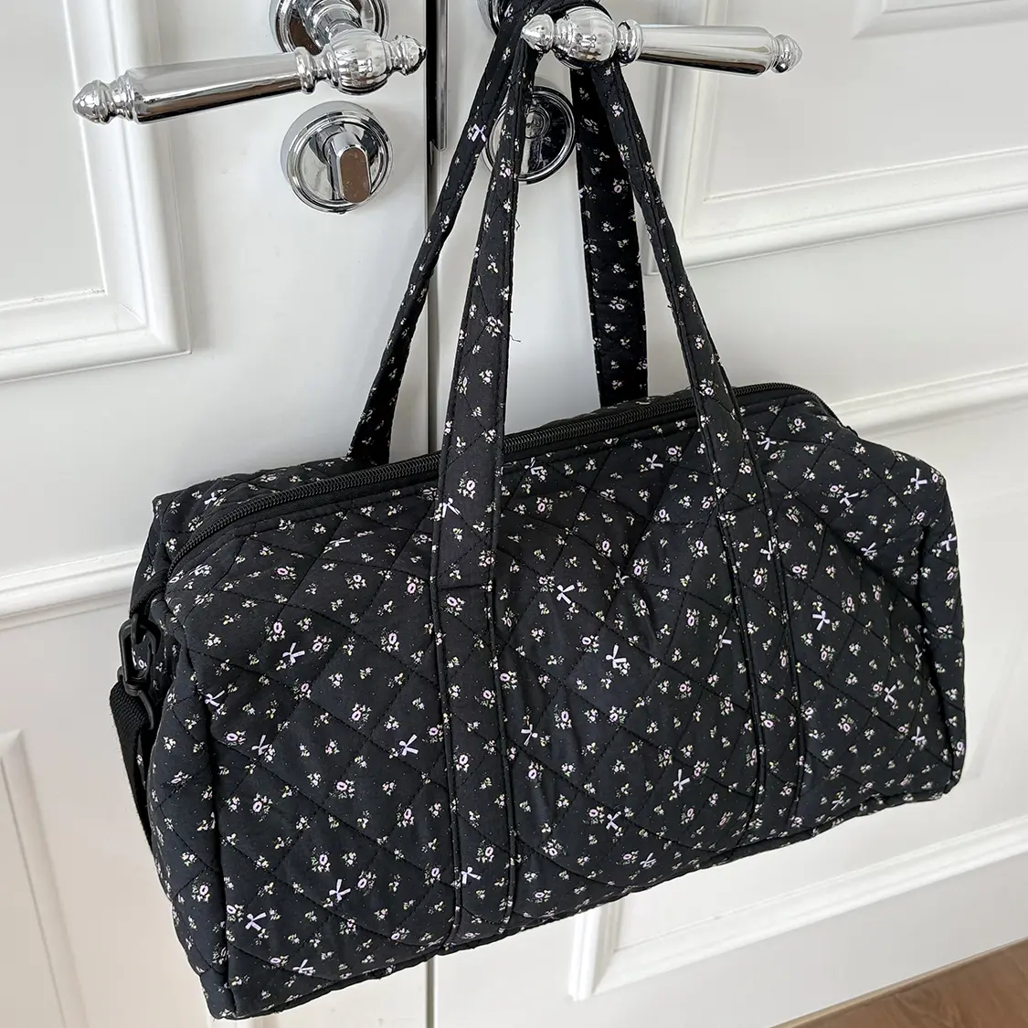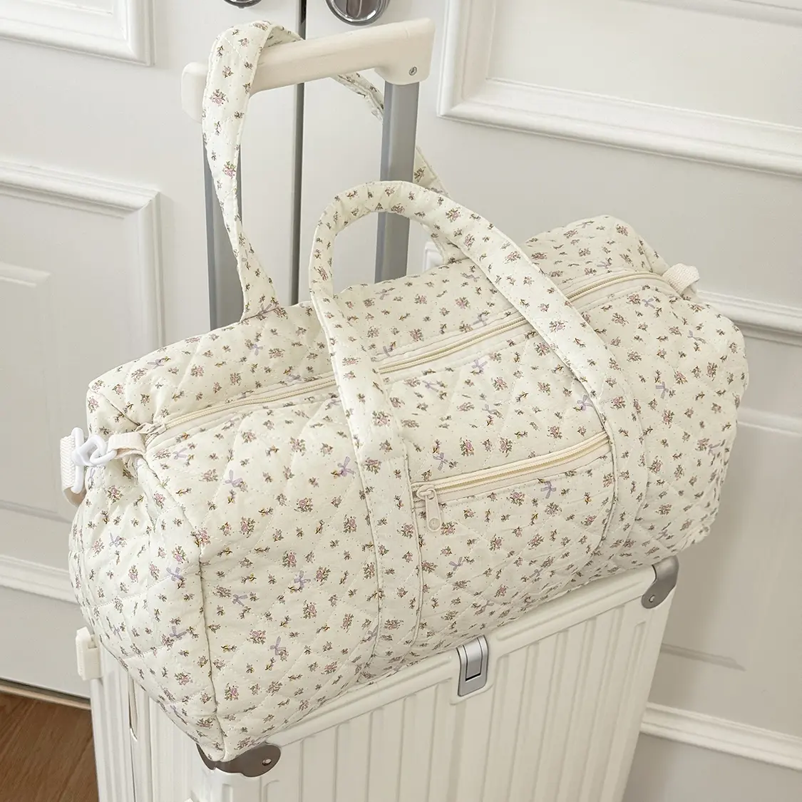 Instagram-style floral print soft quilted patchwork travel bag/gym bag with zipper; soft fabric weekend travel bag suitable for women.