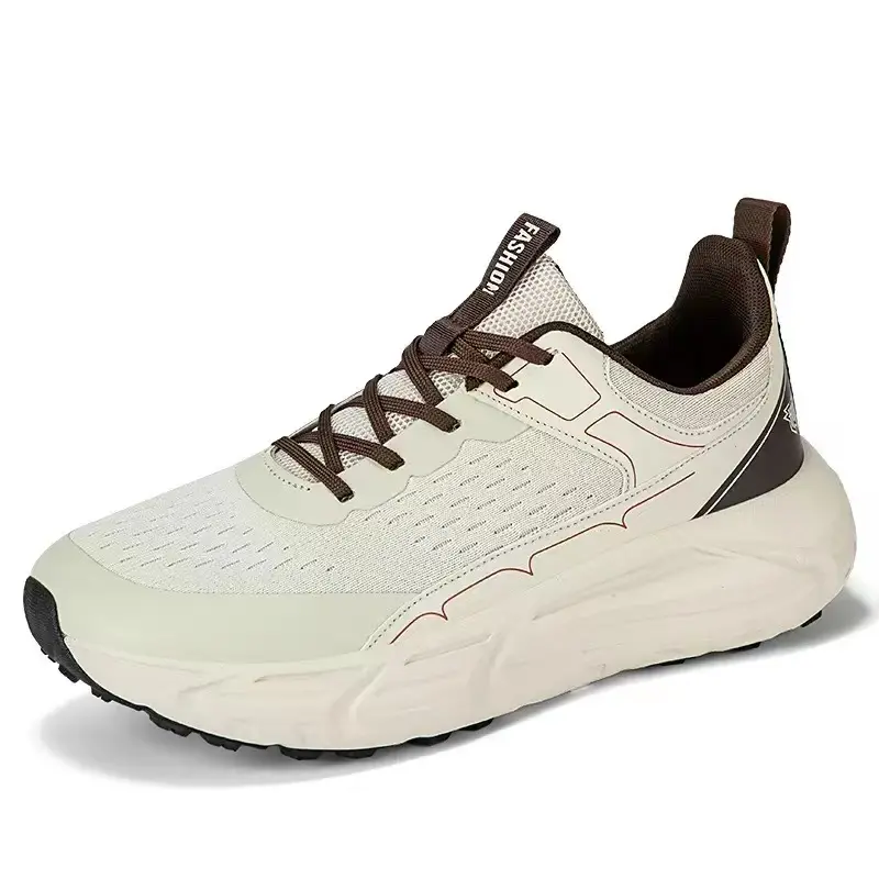 Built for the modern American runner who demands cloud-like comfort and head-turning street style, these chunky running sneakers are your ultimate companion for training, daily runs, and casual wear.Crafted with a ultra-breathable mesh upper, these kicks deliver superior airflow to keep your feet cool and dry, even during the longest runs or hottest days. No more stuffy, overheated feetjust fresh comfort mile after mile. The star of the show is the ultra-cushioned thick sole, engineered to provide unbeatable shock absorption that protects your joints from impact, delivering a soft, bouncy, cloud-like ride with every stride.The sleek beige and brown color block design gives these sneakers a timeless, versatile look that transitions seamlessly from the track to the streets. Pair flawlessly with joggers, jeans, or workout gear for an instant style upgrade. Lightweight, durable, and supportive, theyre perfect for runners, gym-goers, and anyone who values all-day comfort.Whether youre chasing a new PR, hitting the gym, or running errands around town, these American runner-approved sneakers blend performance, comfort, and style. Grab your pair now and step up your running game!