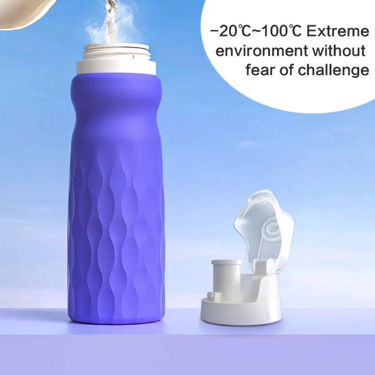Shock-Resistant Foldable Water Bottle - Made from Food-Grade Silicone, Double Lock Leak-Proof for Gym And Hiking | Fits in Cup Holders & Complies with Airport Security