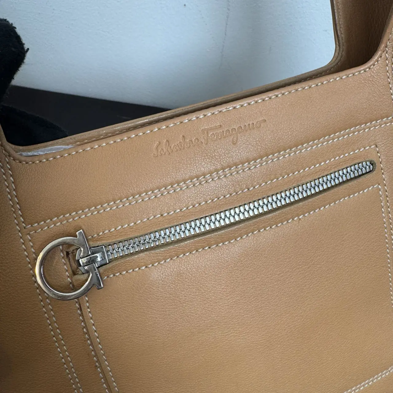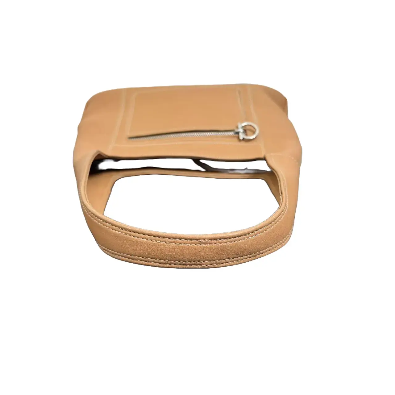 ·Design Details: The front is decorated with a zipper pocket featuring the brand's iconic Gancini double-ring metal clasp, serving as a classic symbol of FERRAGAMO and allowing easy access to items. The top of the bag is embossed with the "Salvatore Ferragamo" gold-foil logo, showcasing the brand's luxury heritage in a low-key way.