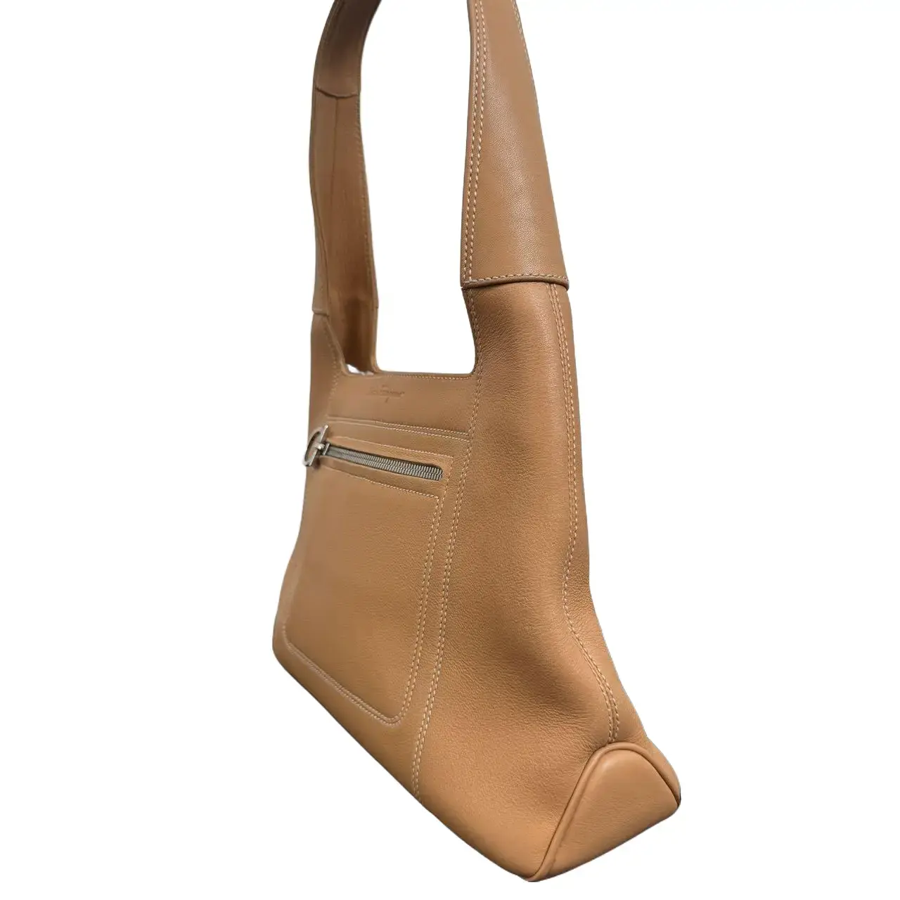 This is an iconic vintage hobo tote bag from FERRAGAMO, a perfect fusion of the brand's signature Italian minimalism and commuter practicality.