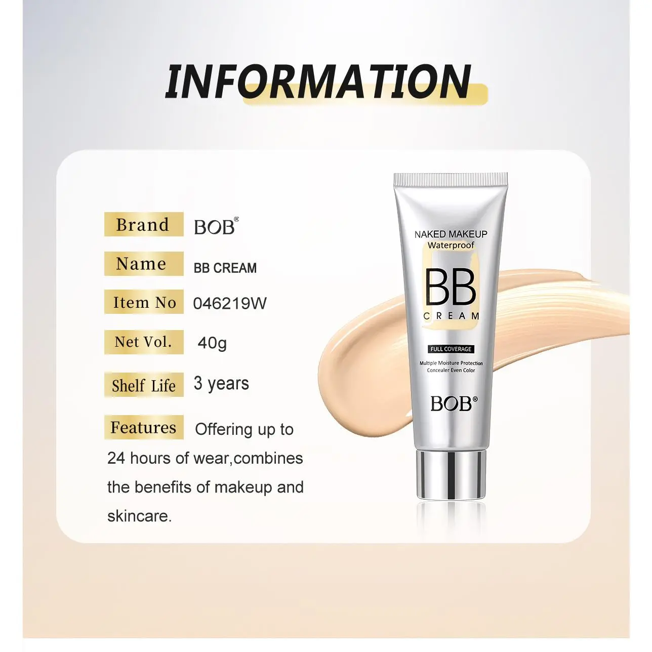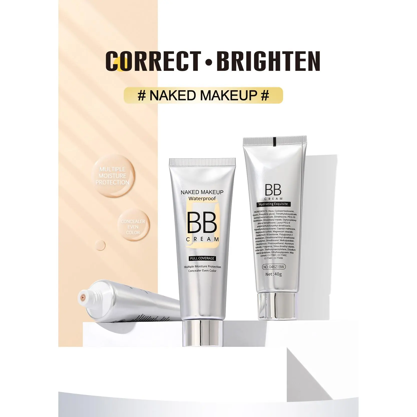 Isolating BB cream, natural concealer, non-caking, moisturizing, long-lasting foundation, natural look cream, in stock