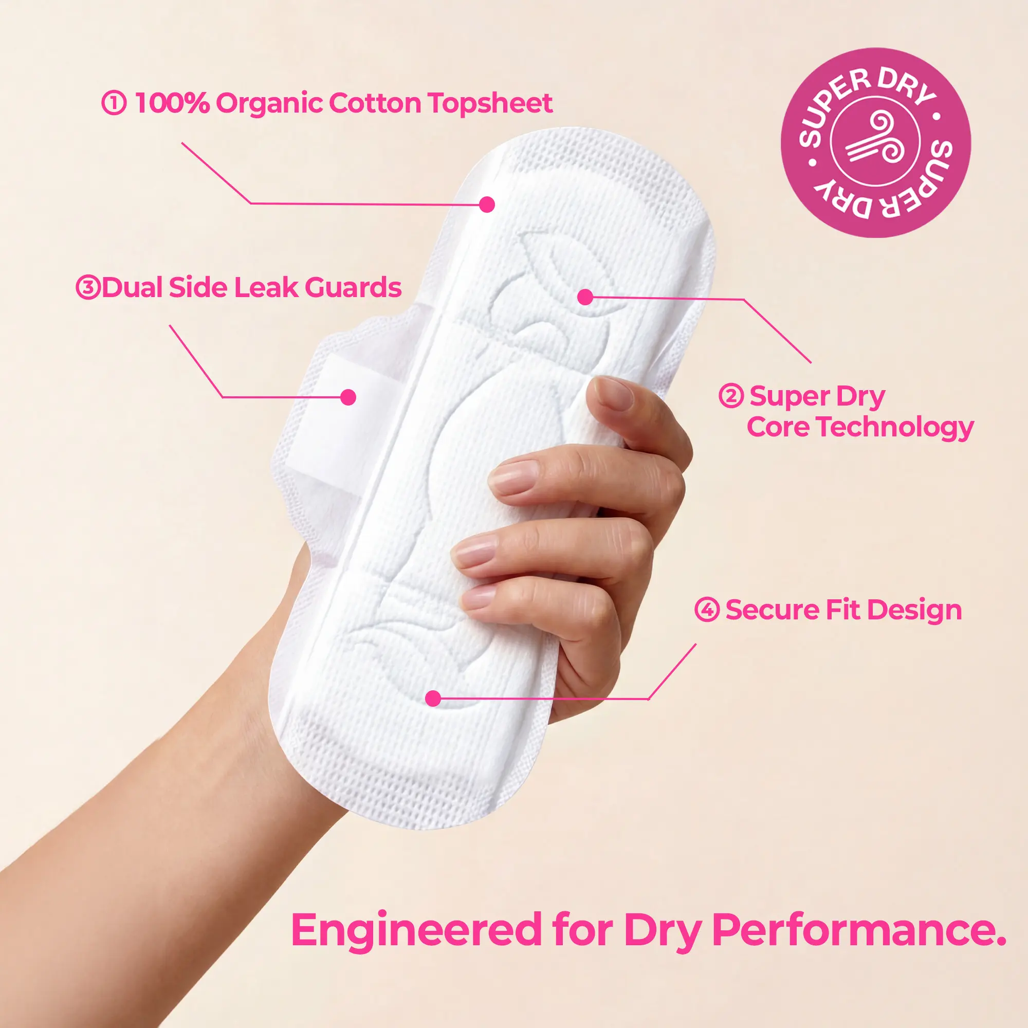 ·SUPER DRY Technology: High-performance core that locks in moisture instantly.