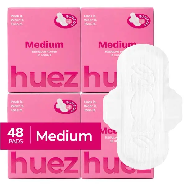 huez 100% Organic Cotton top sheet Sanitary Pads - Medium (48 Count) - 9.4 inch