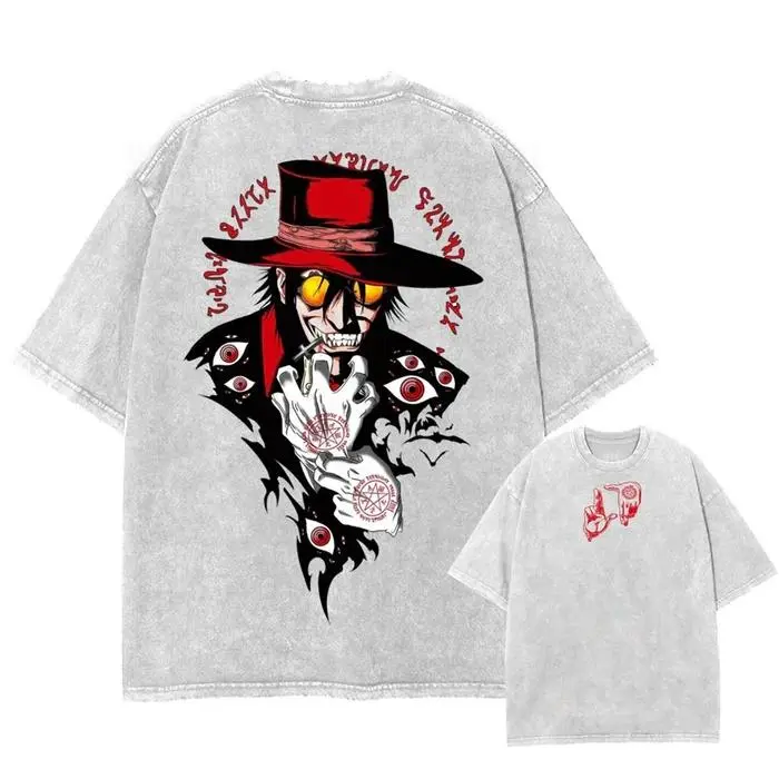 5. Alucard Hellsing Vintage Washed Oversized Anime Graphic Tee