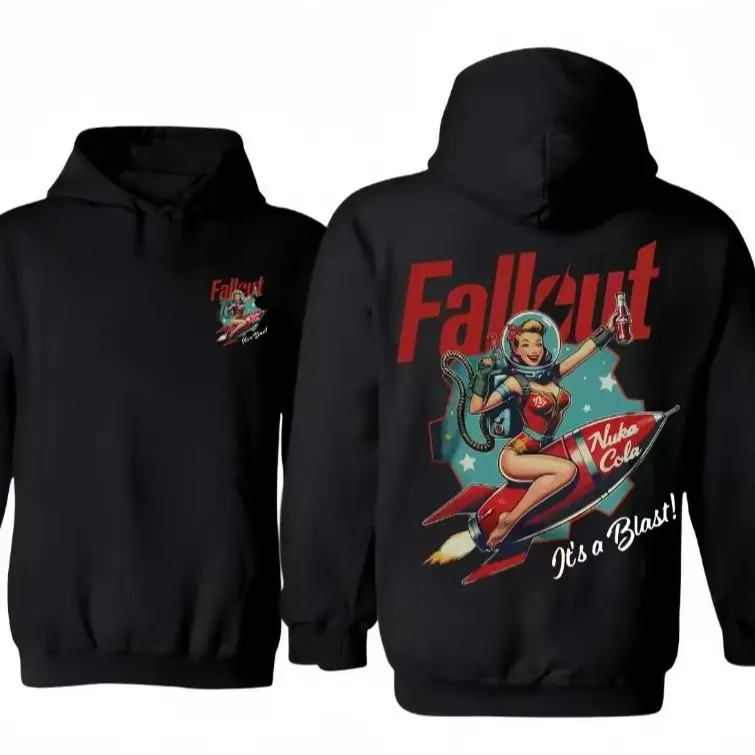 Iconic Nuka-Cola Graphic Design: Show off your love for the Fallout universe with this vintage Nuka-Cola logo design.The bold graphic perfectly captures the spirit of the post-apocalyptic world of Fallout, making it an eye-catching piece for any fan of the game.Whether you're exploring the Wasteland or just hanging out with friends, this hoodie/tee lets you wear your fandom with pride!🎮💥