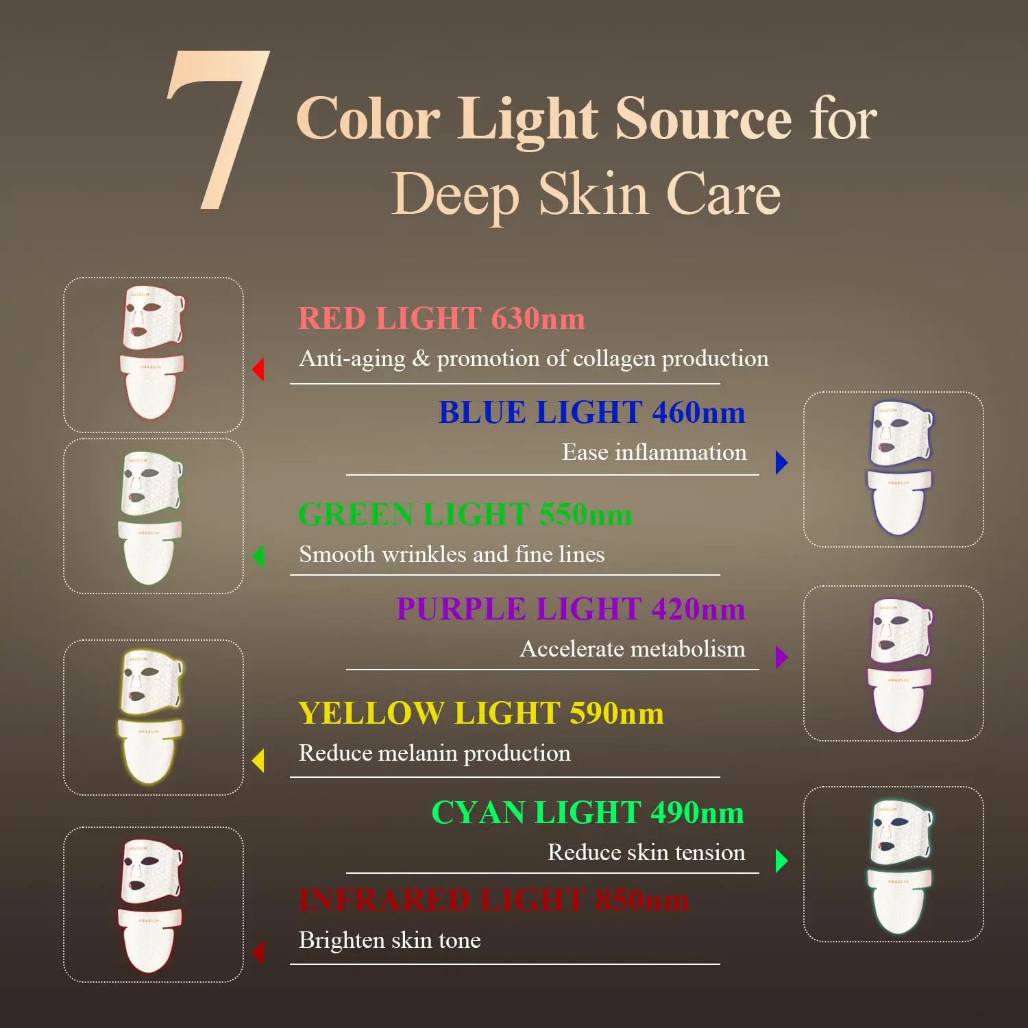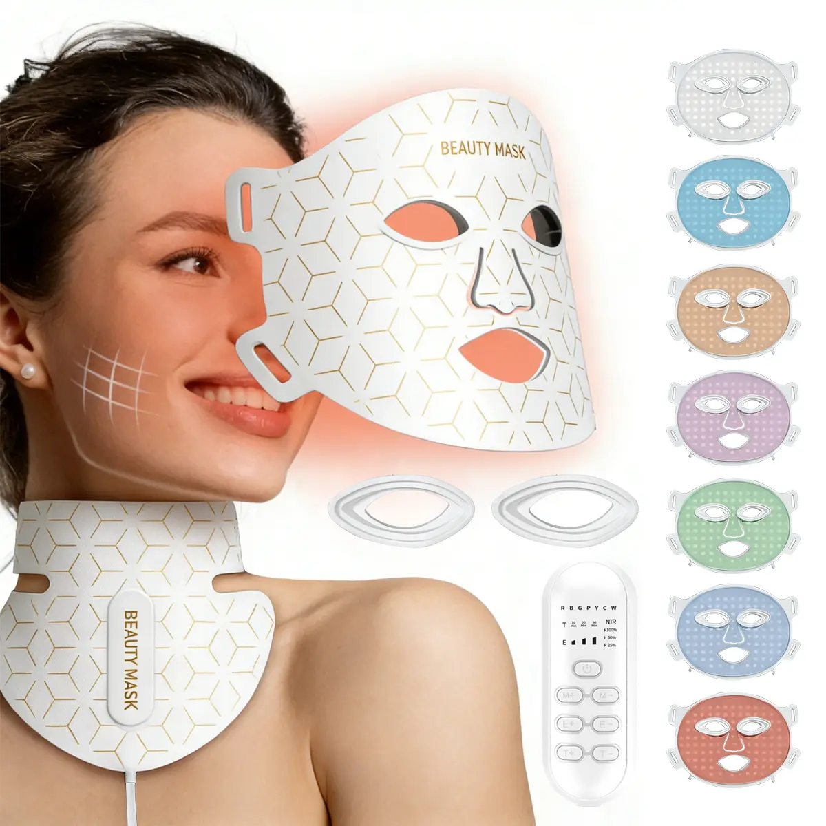 AYYHG Led Red Light Therapy Face & Neck Mask, 7 Led Light Therapy Facial Mask, Infrared Red Light Therapy Mask, Infrared Light Skin Rejuvenation(White)