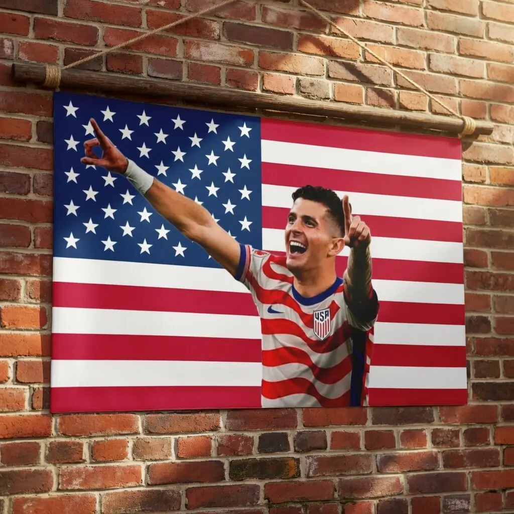 Christian Pulisic USA FLAG, Soccer Flag, GIFT FOR FANS, USA Flag Soccer Banner Pulisic Graphic
