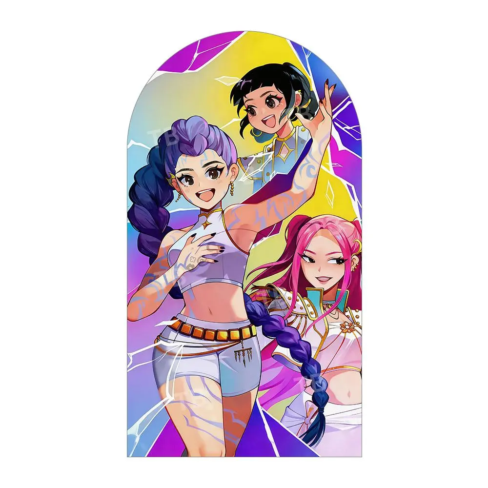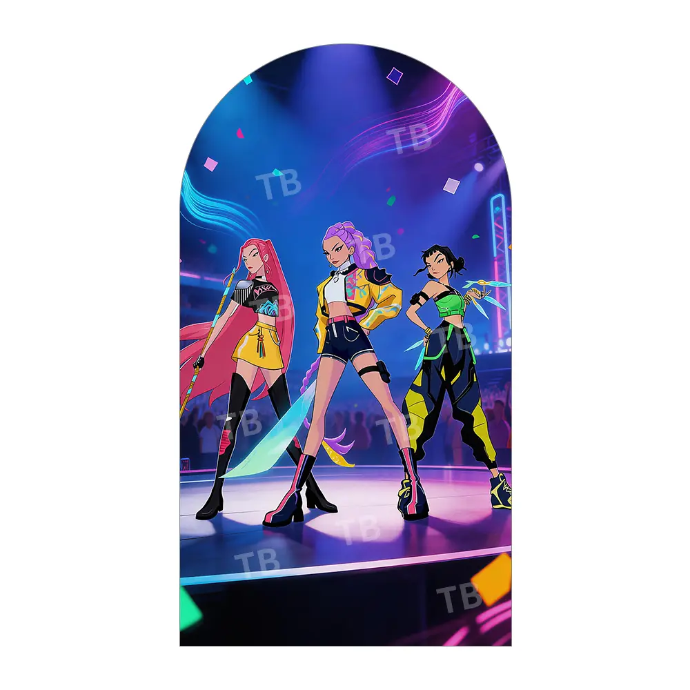 Neon Cyber City Anime Girl Group Arch Backdrop Cover Set for Concert Party
