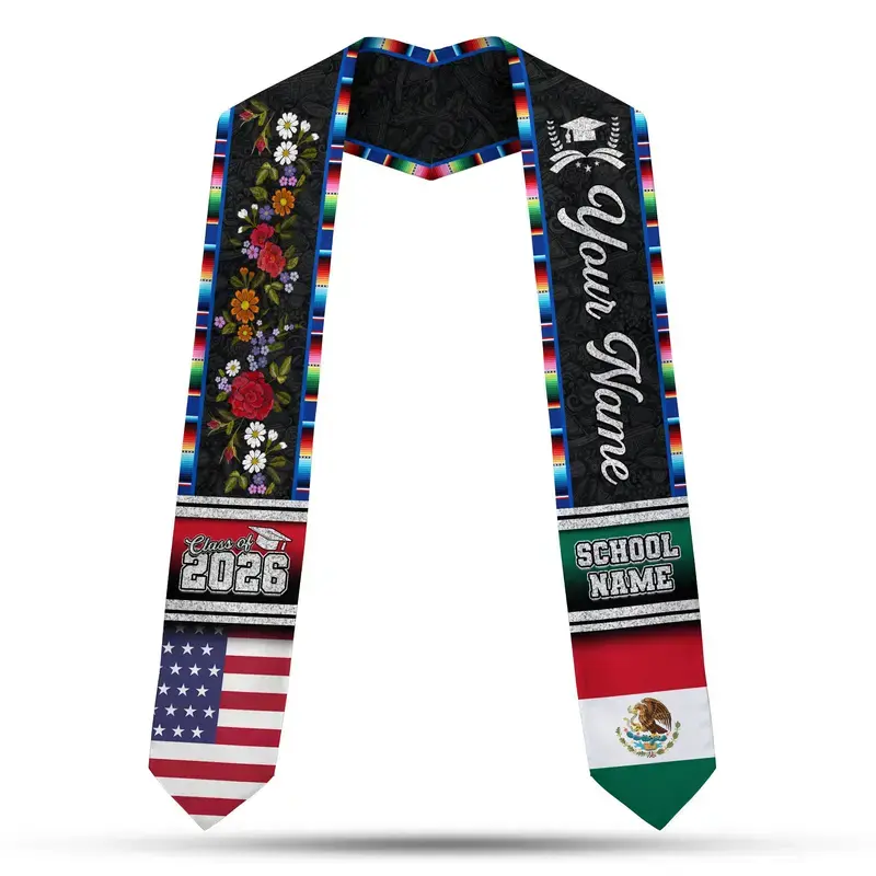 Custom Mexican Graduation Sash 2026, Mexican American Flag Graduation Sash 2026, Hispanic Sash