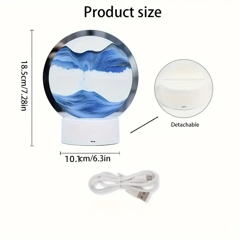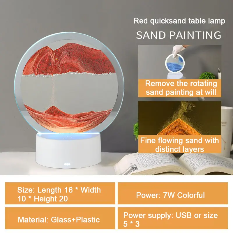 Transform your space with this innovative lamp! It features a rotatable design that creates a mesmerizing flowing sand art effect. Perfect for home or office, this lamp adds a creative touch to any room. The 7W LED USB night light ensures soft, ambient lighting. Ideal as a relaxing gift, it combines functionality with artistic flair.