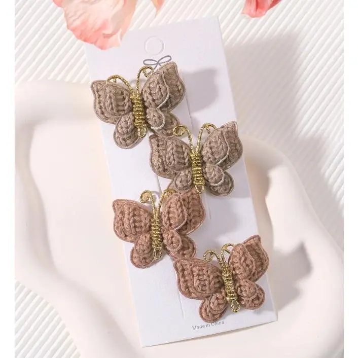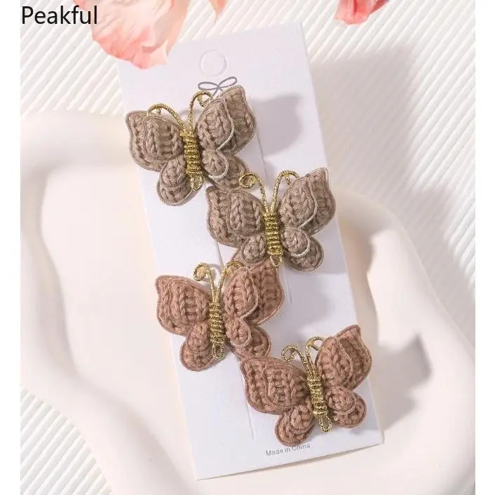 4pcs Butterfly Hair Clips Set – Cute Wool Knitting Accessories for Kids, Colorful Barrette for Bangs, Perfect Hair Grips for Girls, Adds Charm & Style to Everyday Hairdos