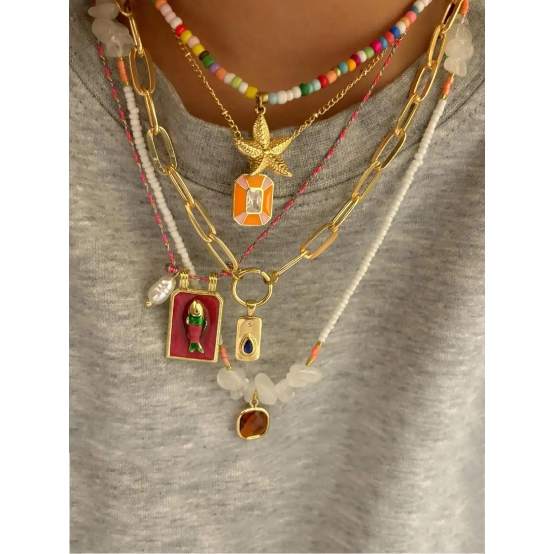 Cute Colorful Beaded Necklace, Fashionable Starfish & Fish Design Pendant Necklace for Women & Girls, Trendy All-match & Exquisite for Birthday Gift, Mothers Day Gift Ideas, Charm Necklaces