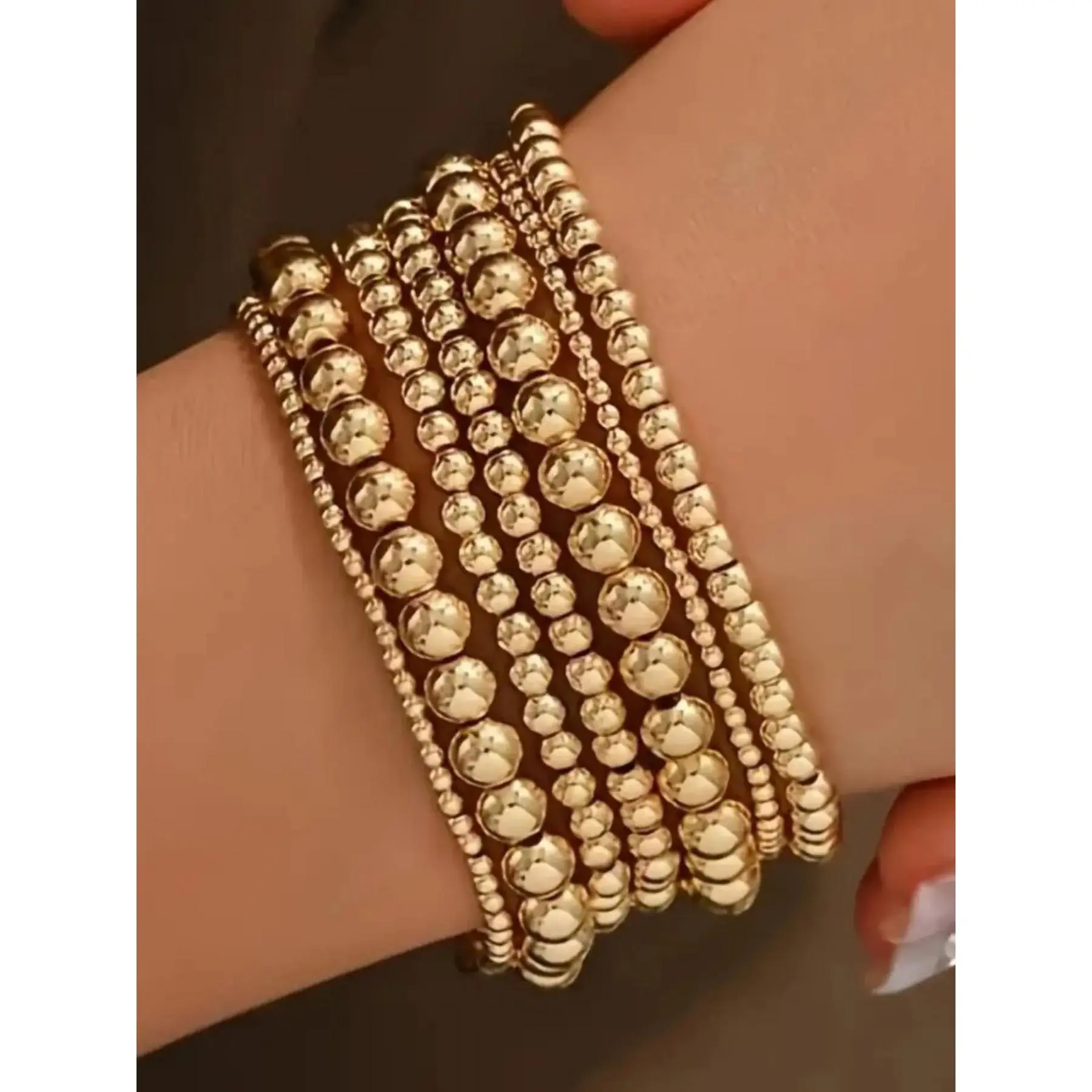 Women's Elegant Beaded Bracelet with Elastic Rope, Trendy Stack Bangle, 7counts/set Exquisite Trendy Bracelet, Fashionable Jewelry for Women & Girls for Daily & Party Decoration