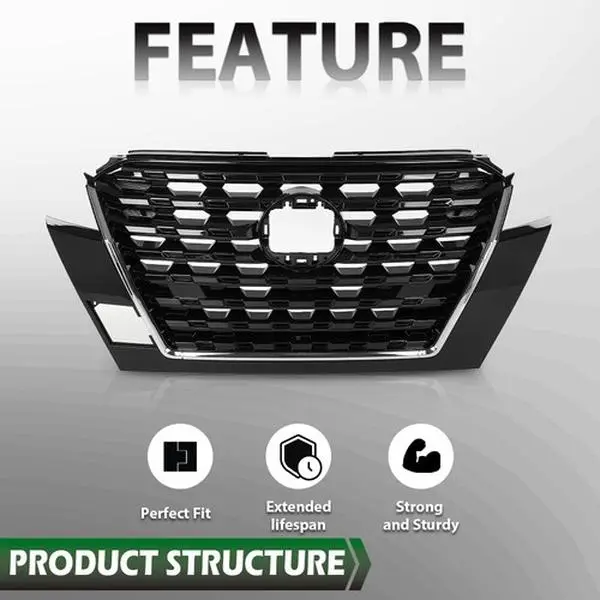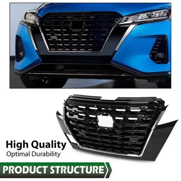 Fit For 2020-2023 Nissan Kicks Front Bumper Upper Grille Grill Black Chrome