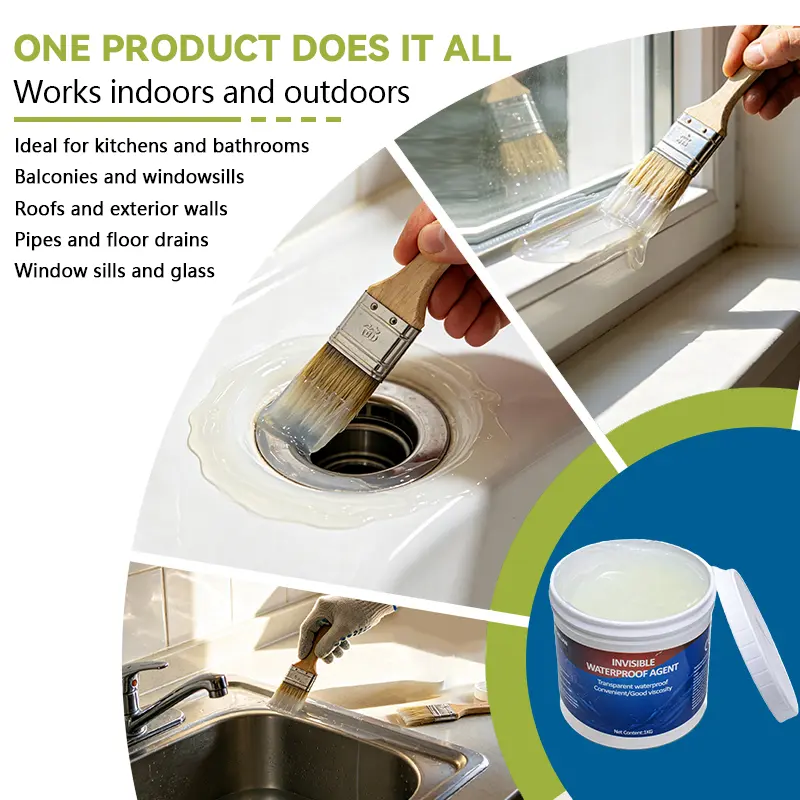 This waterproof glue comes in 2 bottles, each weighing 1kg. It is designed for easy application, ensuring a seamless experience. The glue is an invisible agent, perfect for home use. It prevents leakage, keeping your projects intact and clean.