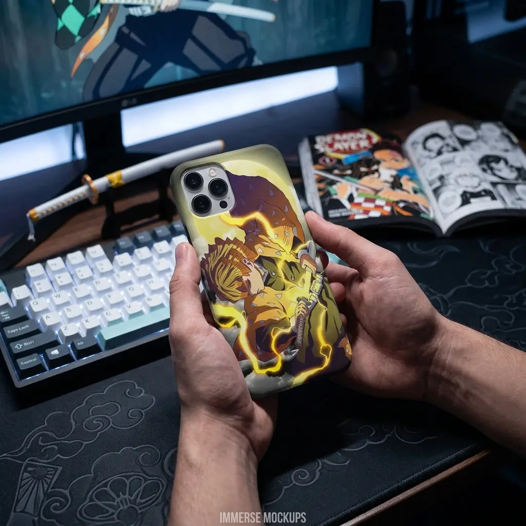 Lightning Anime Boy Phone Case, Thunder Aura Warrior Aesthetic iPhone Case, Yellow Electric Power Manga Style Cover, Cool Otaku Gift, Shockproof Protective Case, Anime Streetwear Vibe