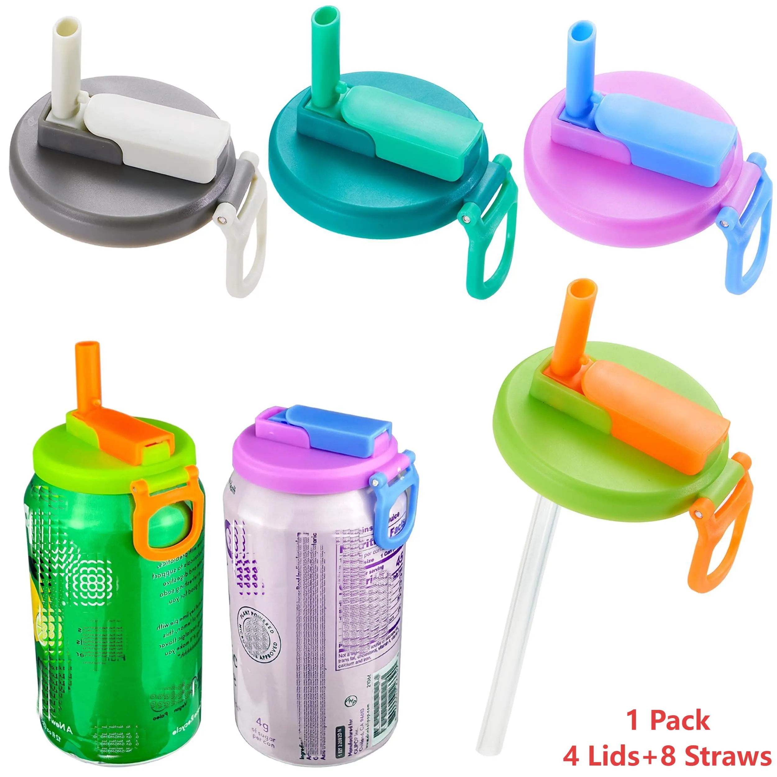 4 PCS Reusable Soda Can Lids with Straw, BPA-Free Drink Covers with Silicone Straws, Leak-Resistant Can Topper for Soda, Juice & Beverages