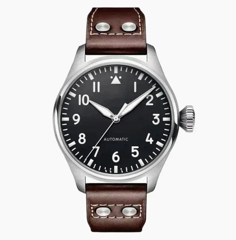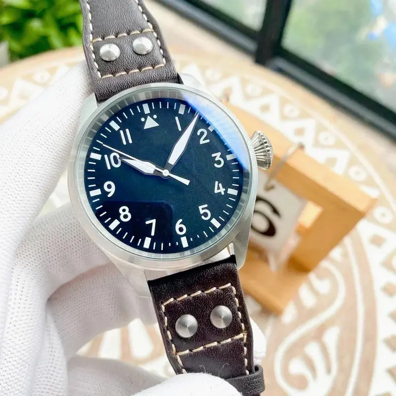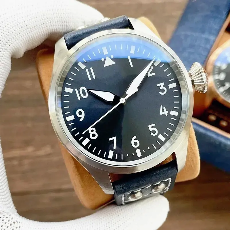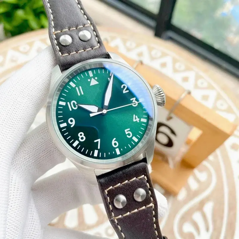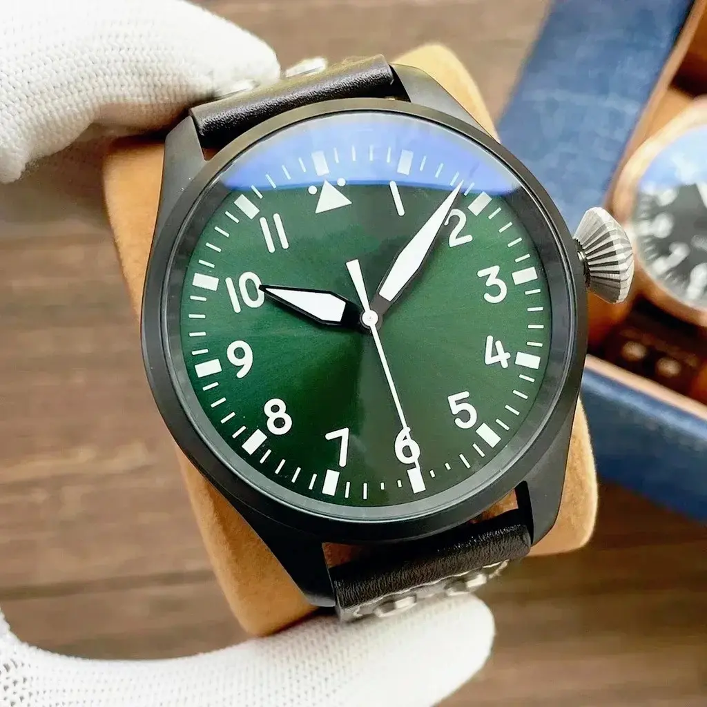 Mens Pilots Automatic Mechanical Watch Green Dial Fashion Big Watches Blue Black Leather Wristwatch