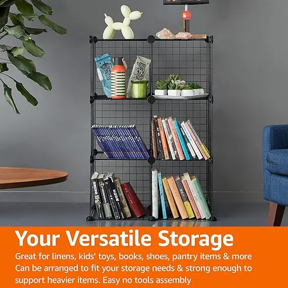 ·Cube-shaped interlocking wire-grid storage shelves; great for linens, kids' toys, books, shoes, pantry items, and more