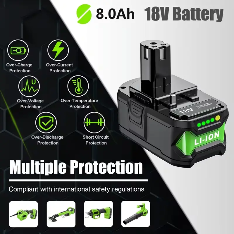 Boost Your Productivity with 8.0Ah Extreme Capacity!Stop waiting for batteries to charge. Our premium replacement batteries for the Ryobi One+ 18V system provide2x runtimeof standard batteries, keeping your tools running through the toughest jobs.