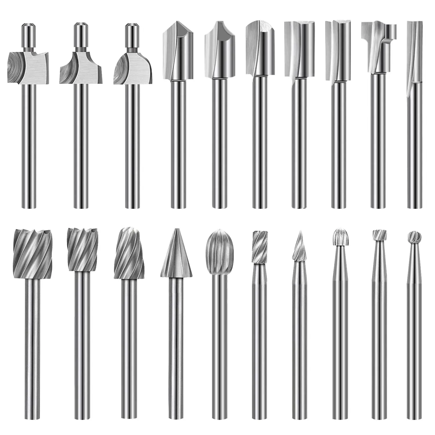 Wood Carving Bits Engraving Router Bit, 20pcs HSS Different Rotary Burr Set with 1/8"(3mm) Shank for Rotary Tools for DIY Woodworking, Carving, Drilling, Engraving, Trimming