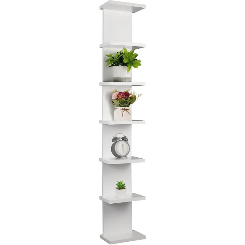 7 Tier Wall Shelf Unit - 43" Lack Floating Shelf, Display Floating Shelves, Vertical Column Wall Decor Mount Floating Storage Home Decor Organizer Tall Tower Utility Shelves, White