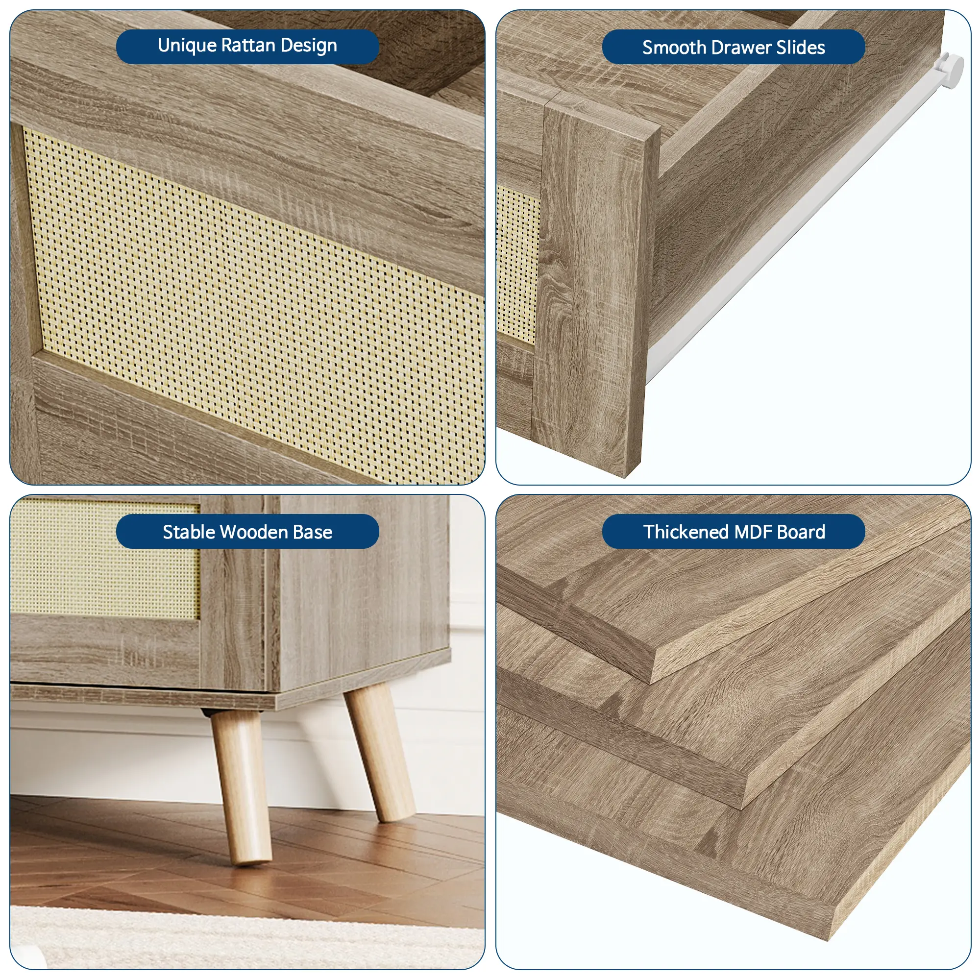 ·Modern Aesthetic: The combination of rattan and MDF wood creates a chic, boho-inspired look that complements farmhouse, mid-century, and modern interiors.