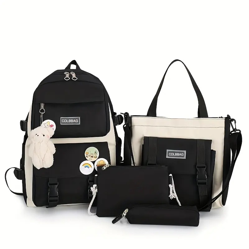4pcs/set Simple Casual Backpack Large Capacity School Bag Travel Bag Canvas Shoulder Bag For Students