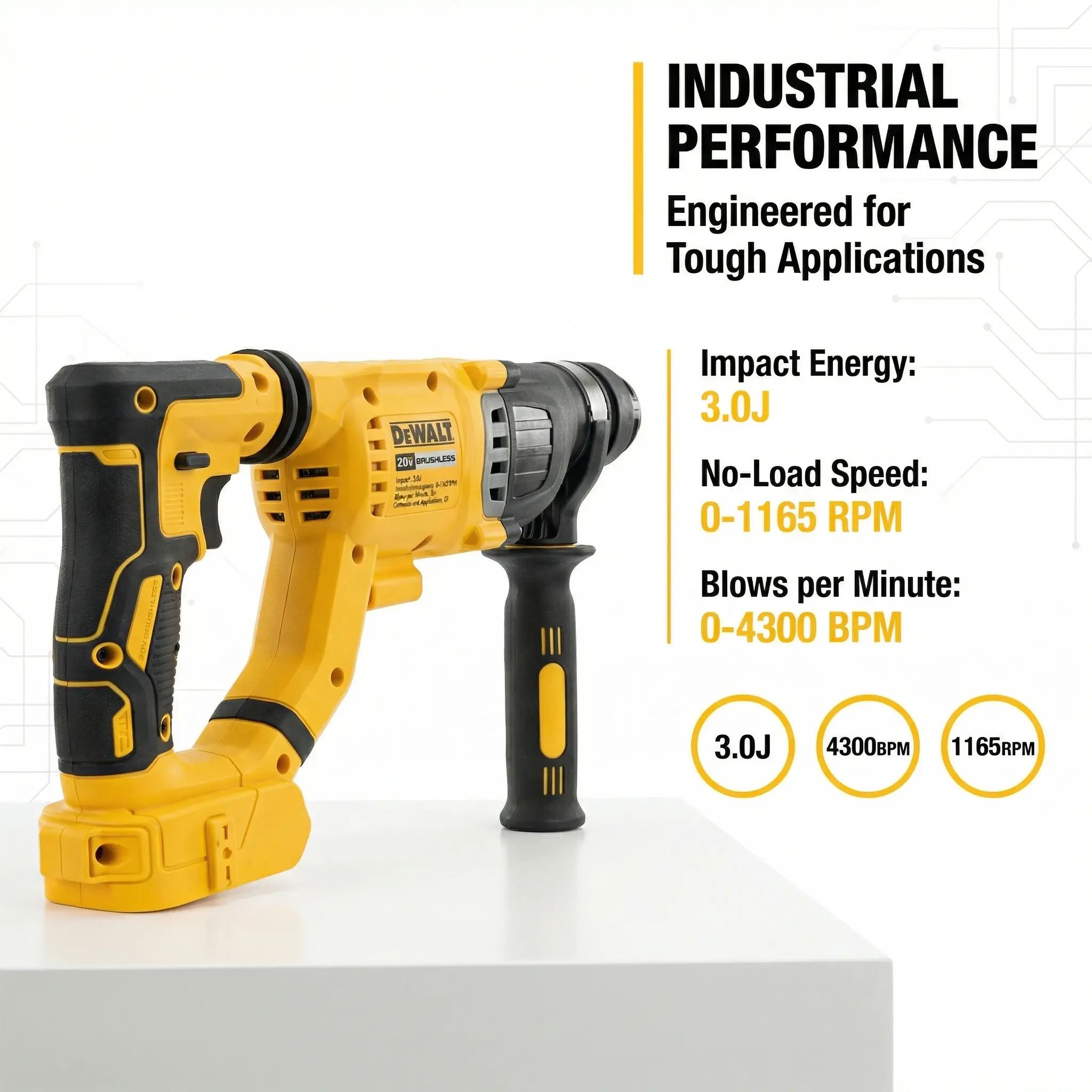 DeWalt DCH263 20V Brushless Rotary Hammer Drill for Concrete Drilling with 3.0J Impact Energy