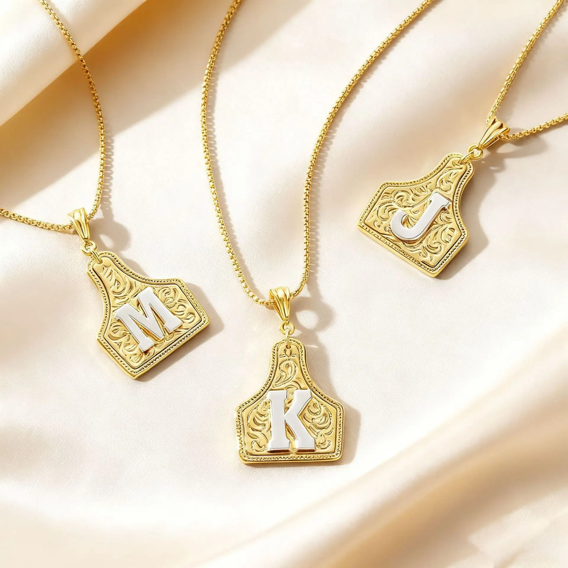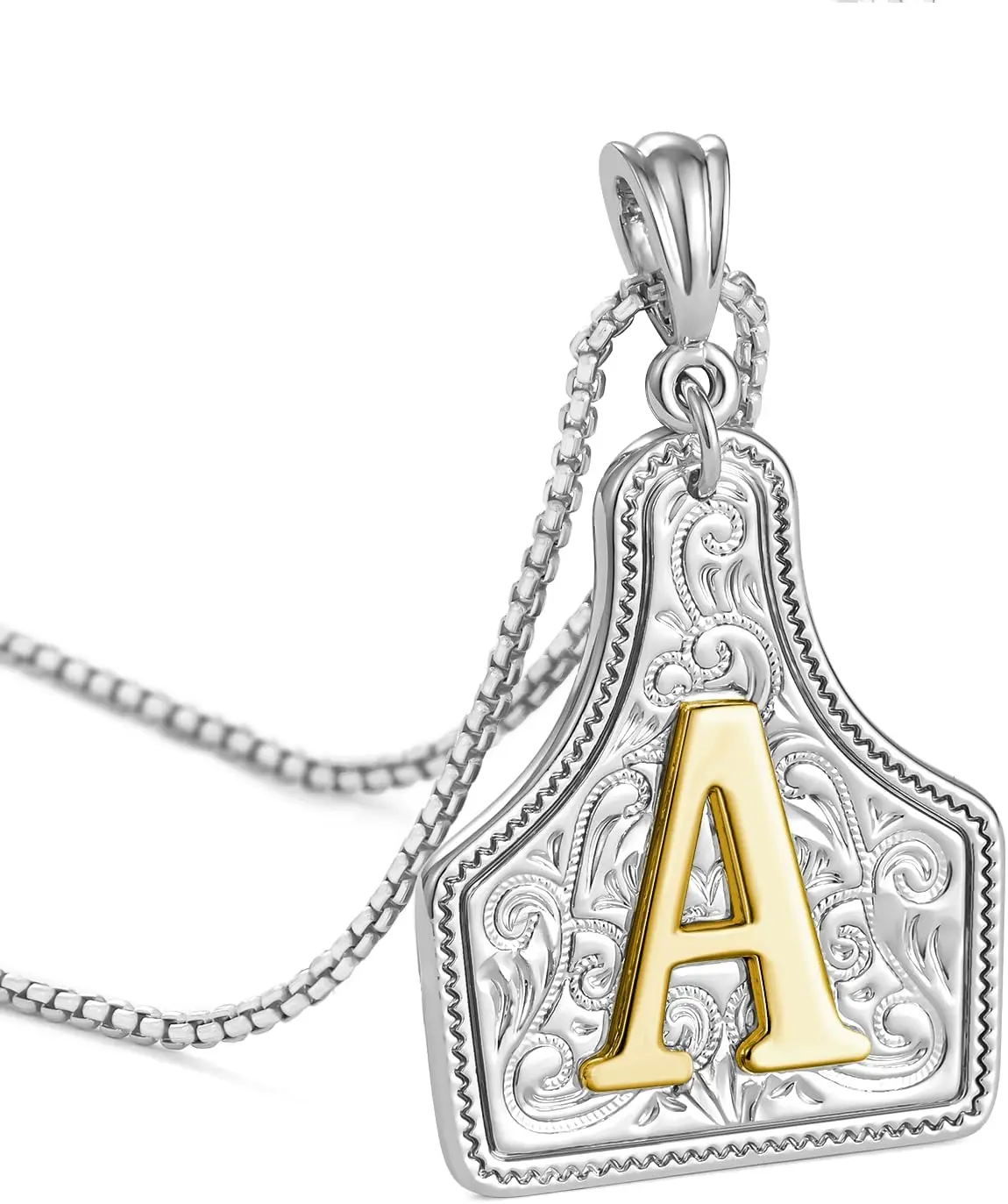 ·Western Charm Design: Inspired by vintage wild west aesthetics. Each letter pendant is hand-carved with 26 different patterns, featuring a two-toned gold and silver texture. Perfect for men and women, designed to accent outfits and western-inspired looks