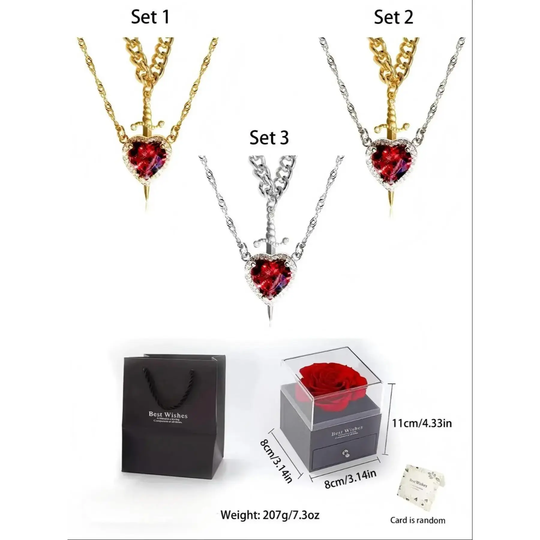 2pcs Heart and Sword Necklace Set, Love Heart Necklace, Unique Couple's Jewelry, Silver Color &, Perfect for Weddings & Parties, Includes Rose Box