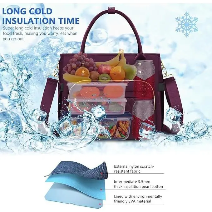Large Capacity Lunch Tote Bag,Lightweight Lunch Cooler Bag,Leakproof Lunch Bag Women,Multi Compartments Lunch Box,Insulated Lunch Box for Women