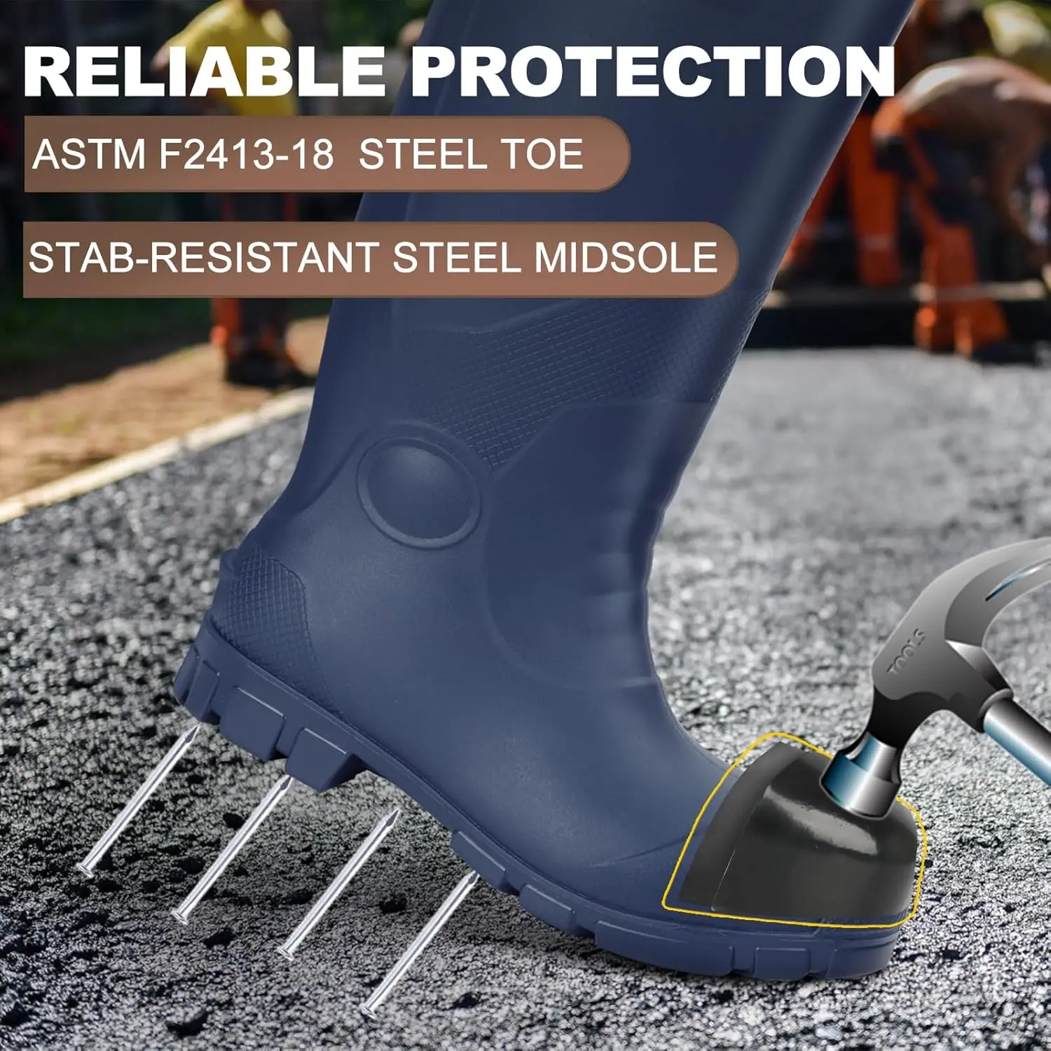 Steel Toe Rubber Work Boots for Men Waterproof Durable Concrete Boots for Hunting Manufacturing Construction
