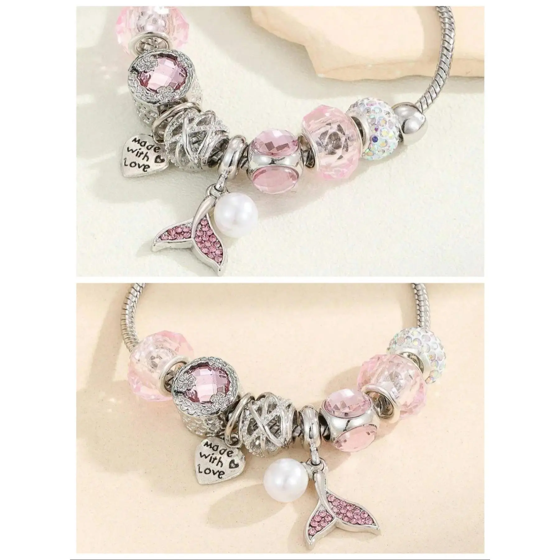 Women's Cute Flower & Rhinestone Fish Tail & Heart Design Bracelet, Fashion Bracelets, Fashion Jewelry for Party, Daily Decor, Trendy All-match & Exquisite Jewelry for Birthday Gift