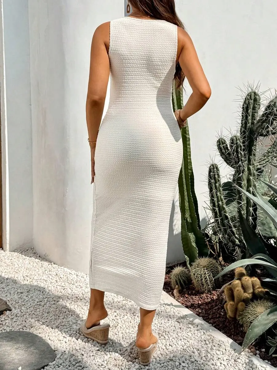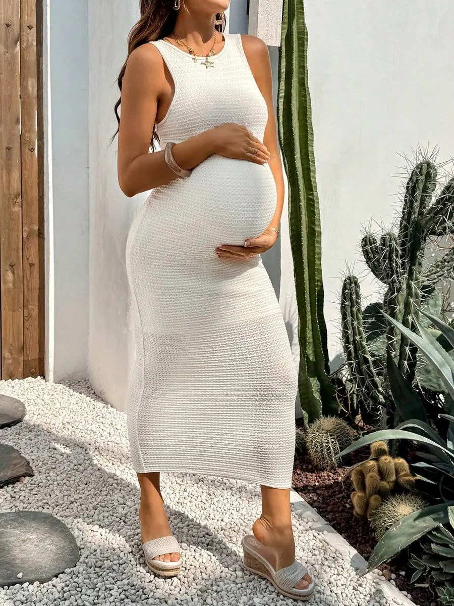ELLIOTTWII Maternity Solid Color Plunging Neckline Backless Sleeveless Fashionable Dress Summer Outfits Maternity White Dress Bump Friendly Dress Pregnancy Dress For Photoshoot Wedding Guest Dress Elegant Dresses