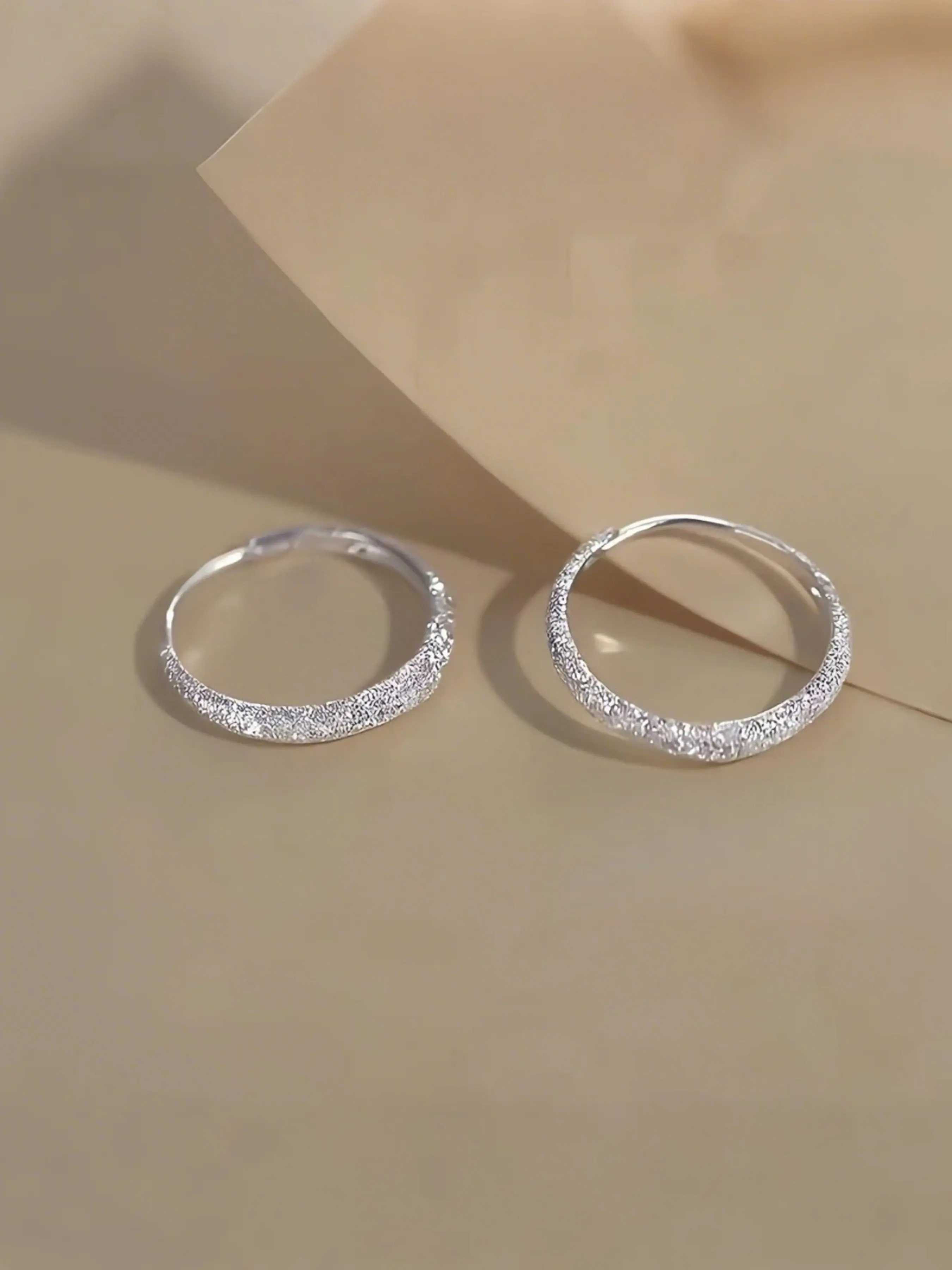 Shiny Sand Texture Earrings, Minimalist Fashion Women's Jewelry, Silver Color, Casual Style, All Seasons, No Choking Hazard