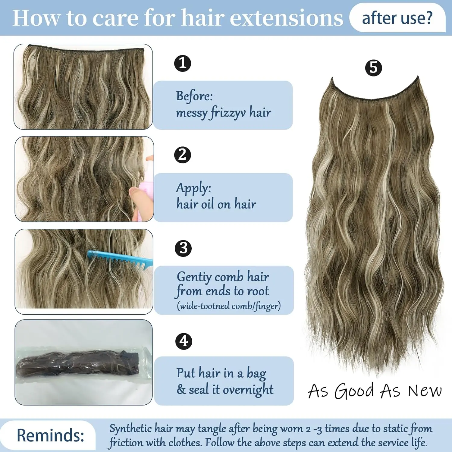 Blend: Drop your top layer of hair and lightly brush. The Ash Blonde highlights will weave through your natural strands for a stunning, multi-tonal finish.