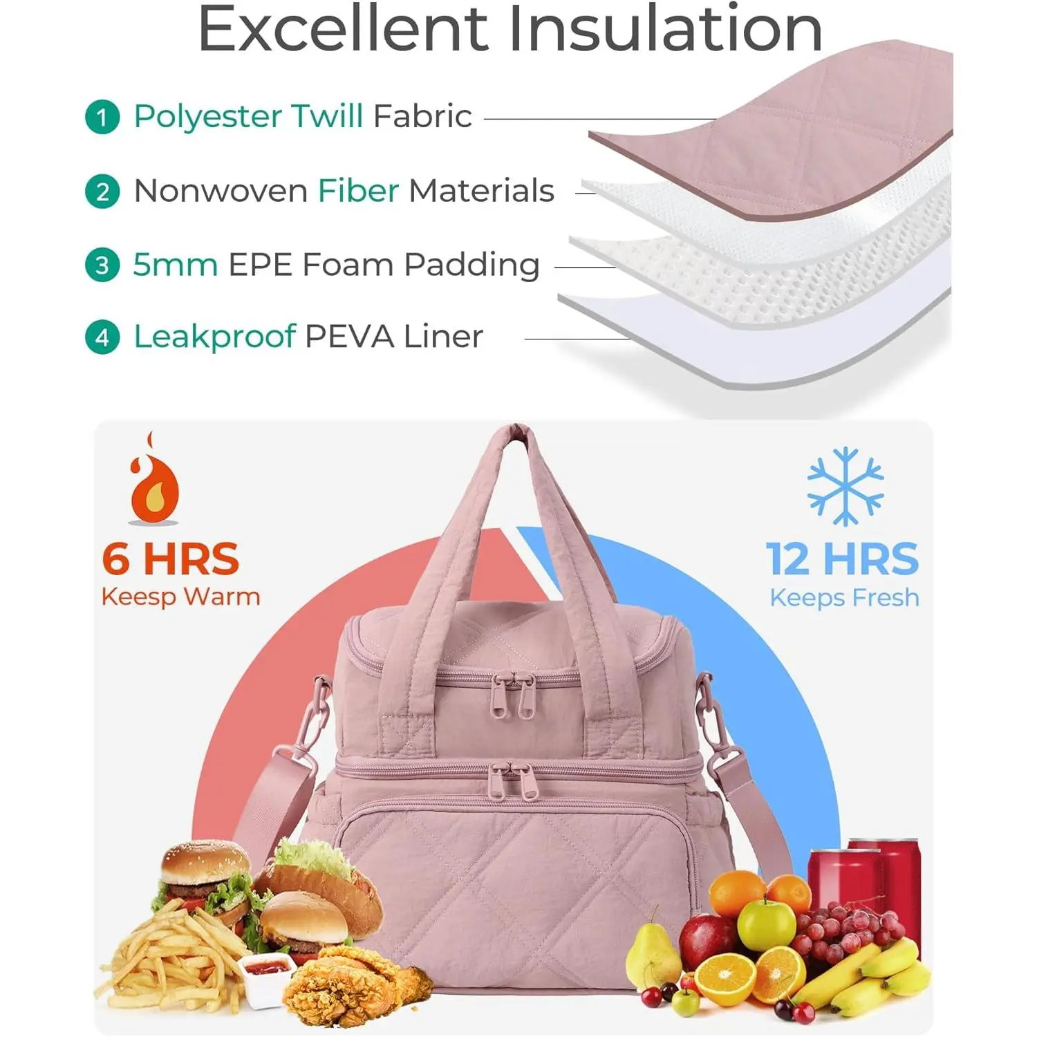 Dual Compartment Insulated Lunch Bag Women 11.8L/16 Can