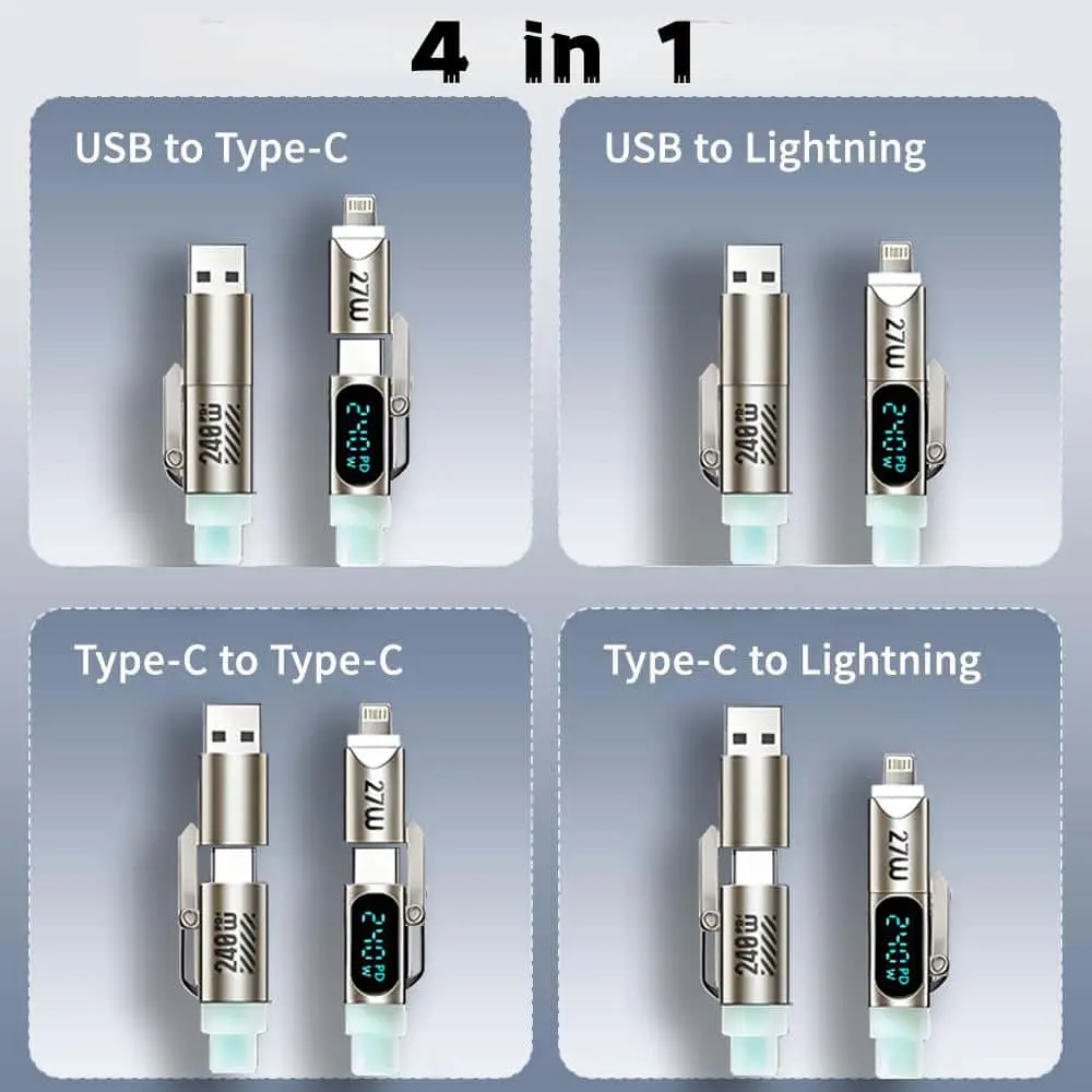 Fast Charging : Experience rapid charging with our 240W Charger&4-in-1 cable, supporting up to 27W for phones and 65W for iPads. It can power your device to 50% in just 30 minutes.