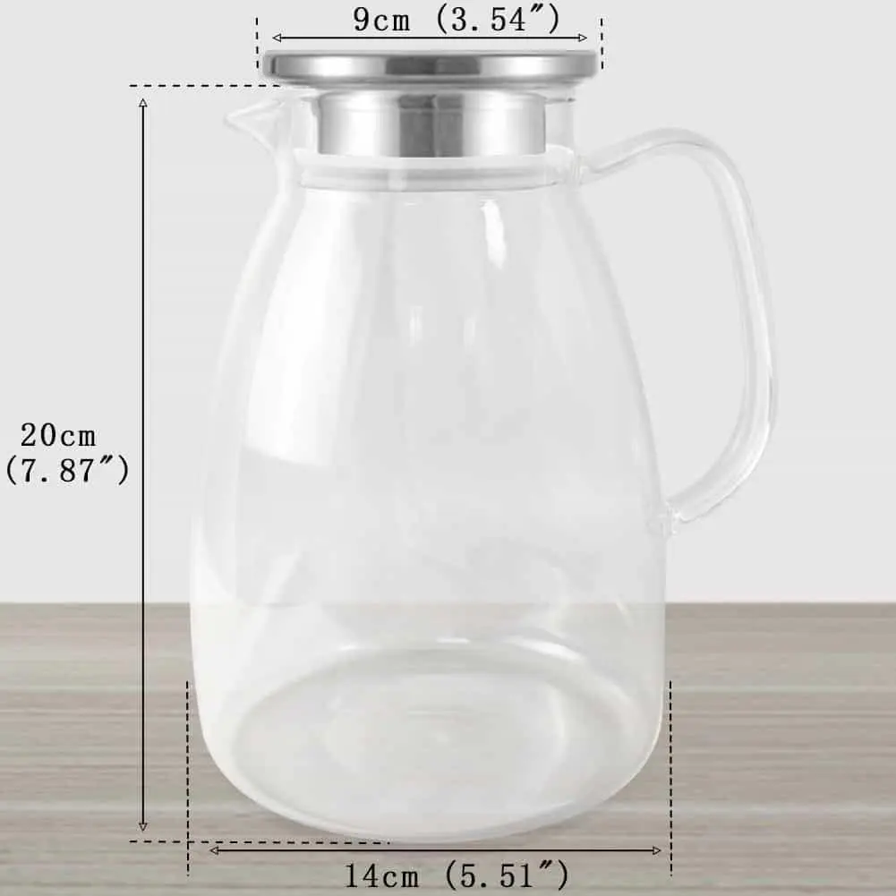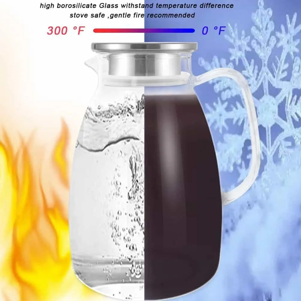 Premium glass pitcher with lids for fridge is made of borosilicate glass which is lead-free and BPA free. It is safe for the refrigerator and stove .