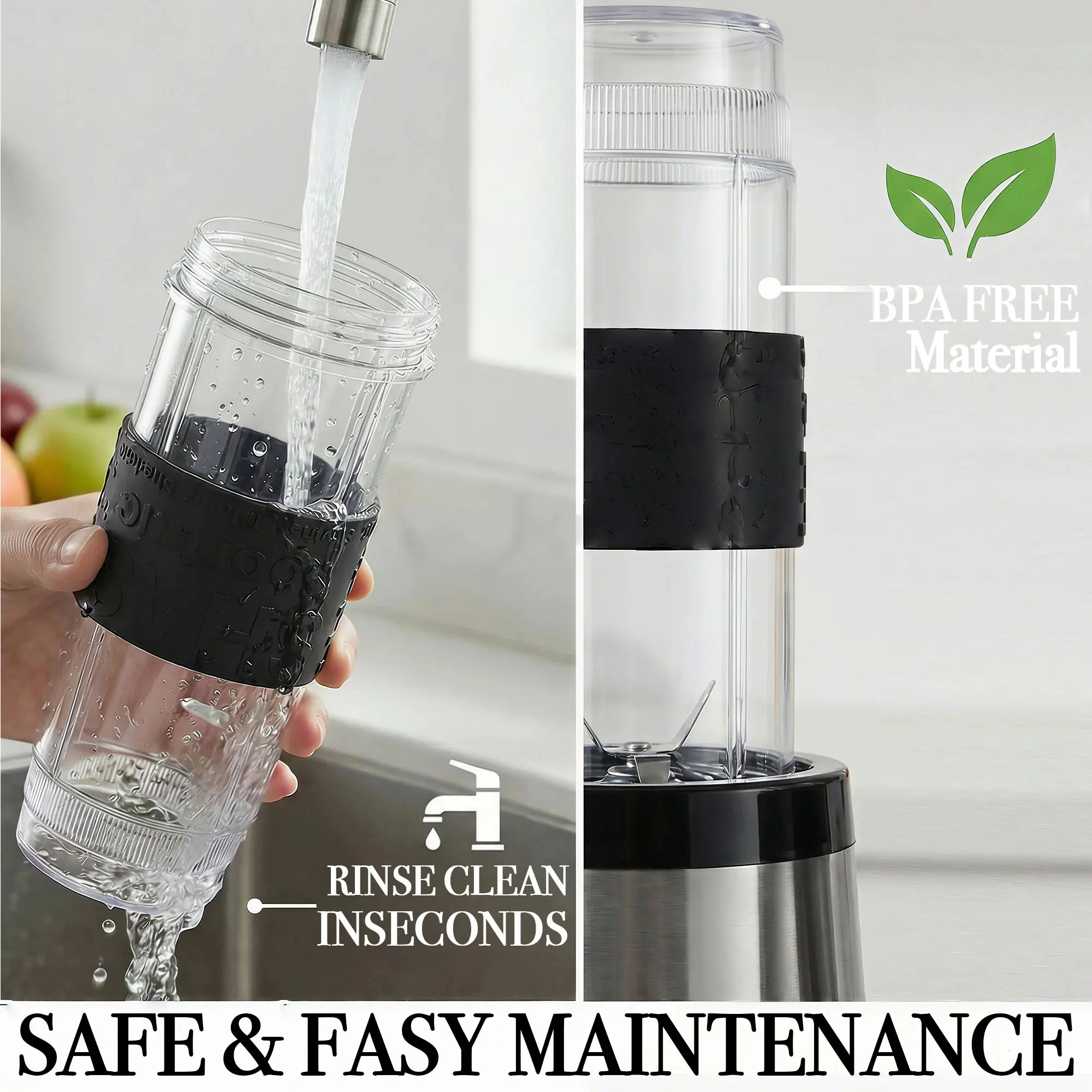·Safe & Portable Cup for On-the-Go Use: Comes with a 20 fl oz (approx. 570ml) portable cup with a lid. The cup is made of BPA-Free material to ensure drinking safety—after blending, simply put on the lid and take it to your commute, gym, or picnic. No extra transfer is needed, reducing cleaning steps.