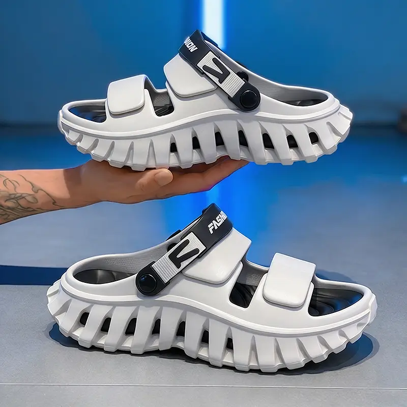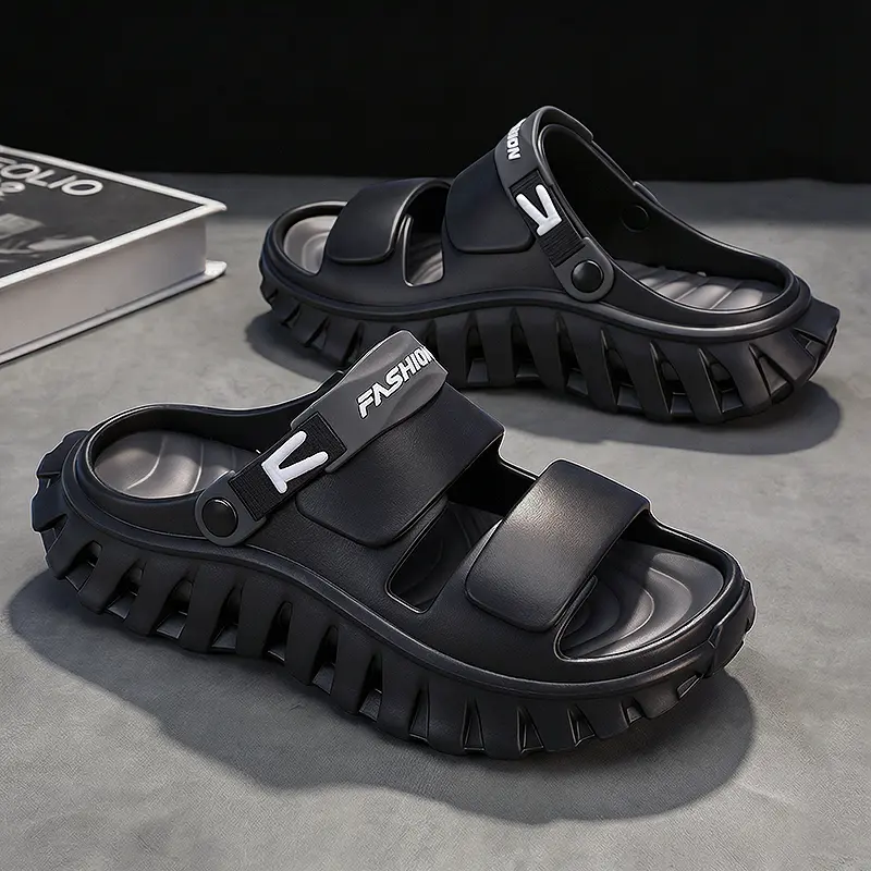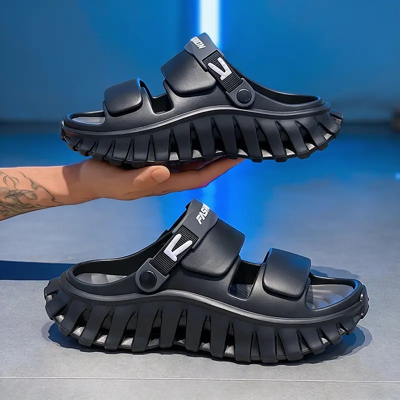 FoamFam Men's Slides are perfect for various settings. Ideal for restaurants, home, outdoor, and beach use. These sandals feature a non-slip, breathable design, ensuring comfort and safety. The shock-absorbing sole provides excellent support, making them a versatile choice for daily wear. 🏖️